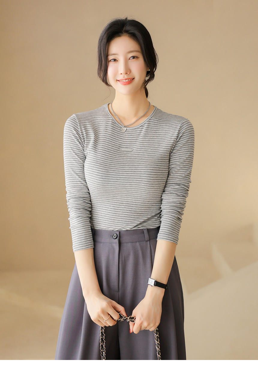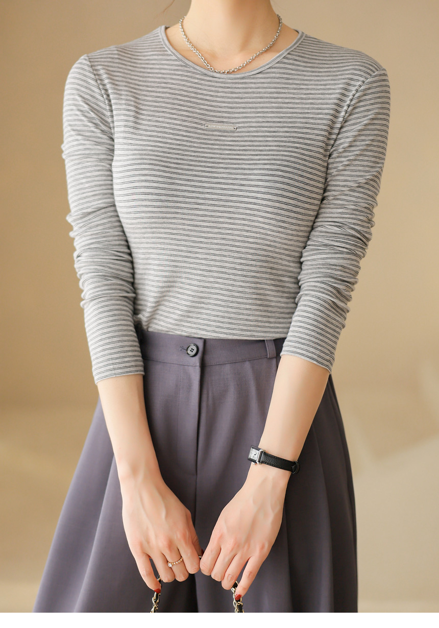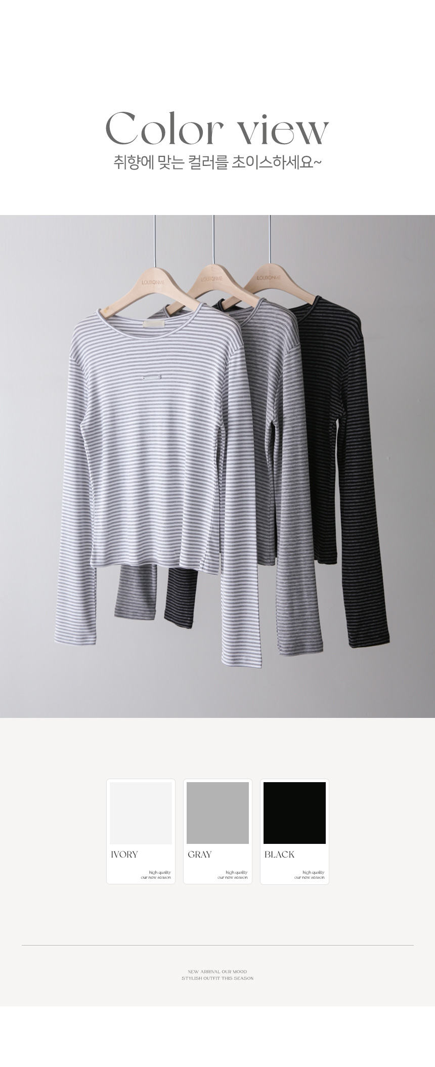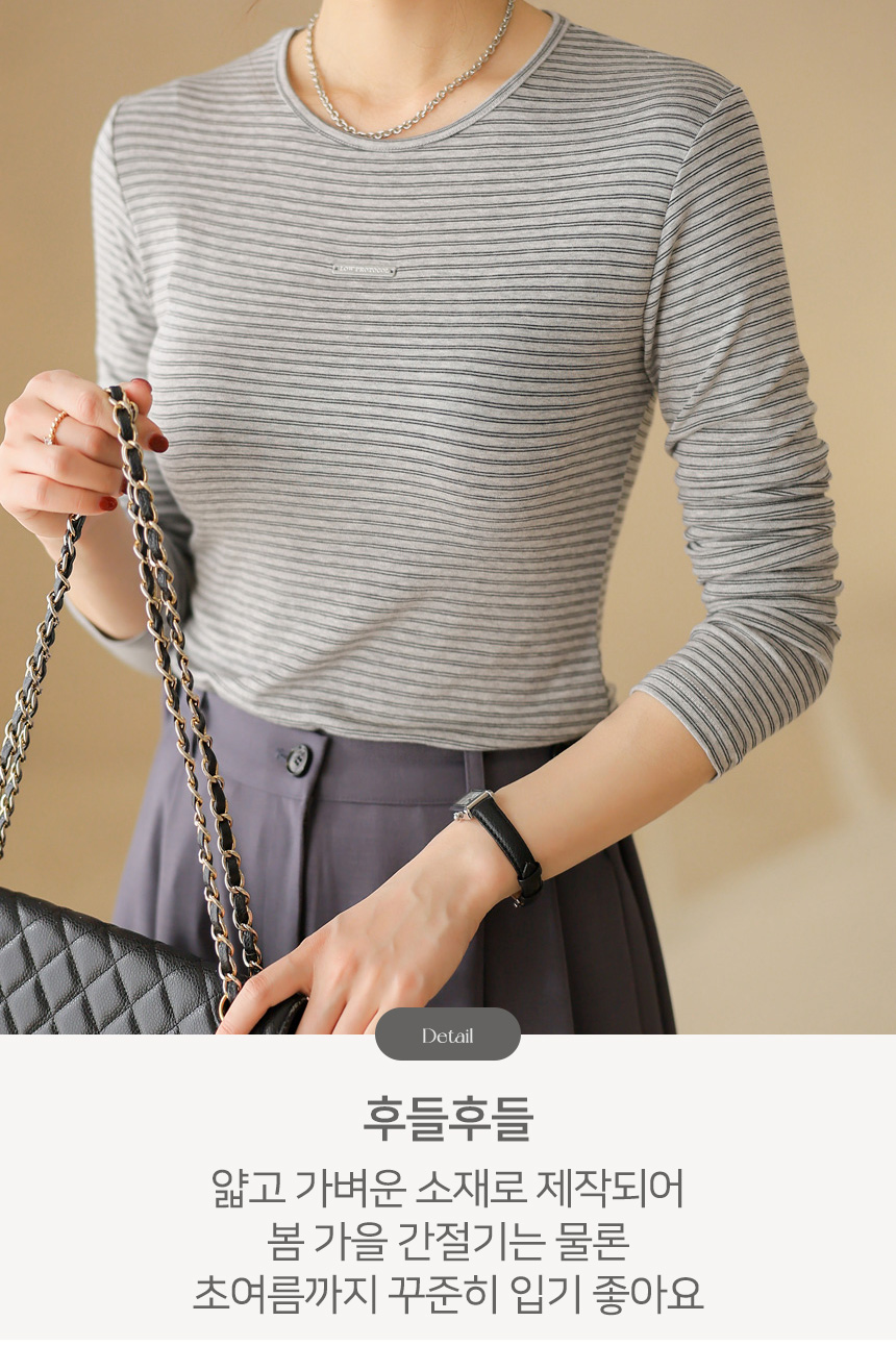 스트라이프 보들보들 터치감 라운드 긴팔 티셔츠