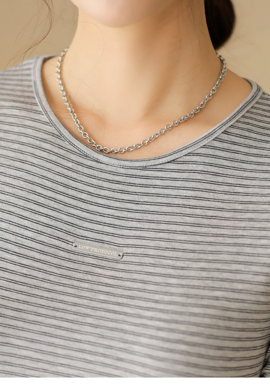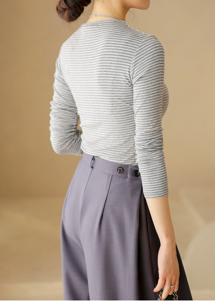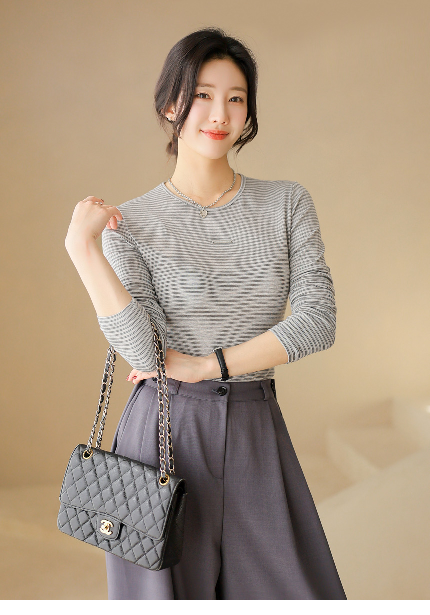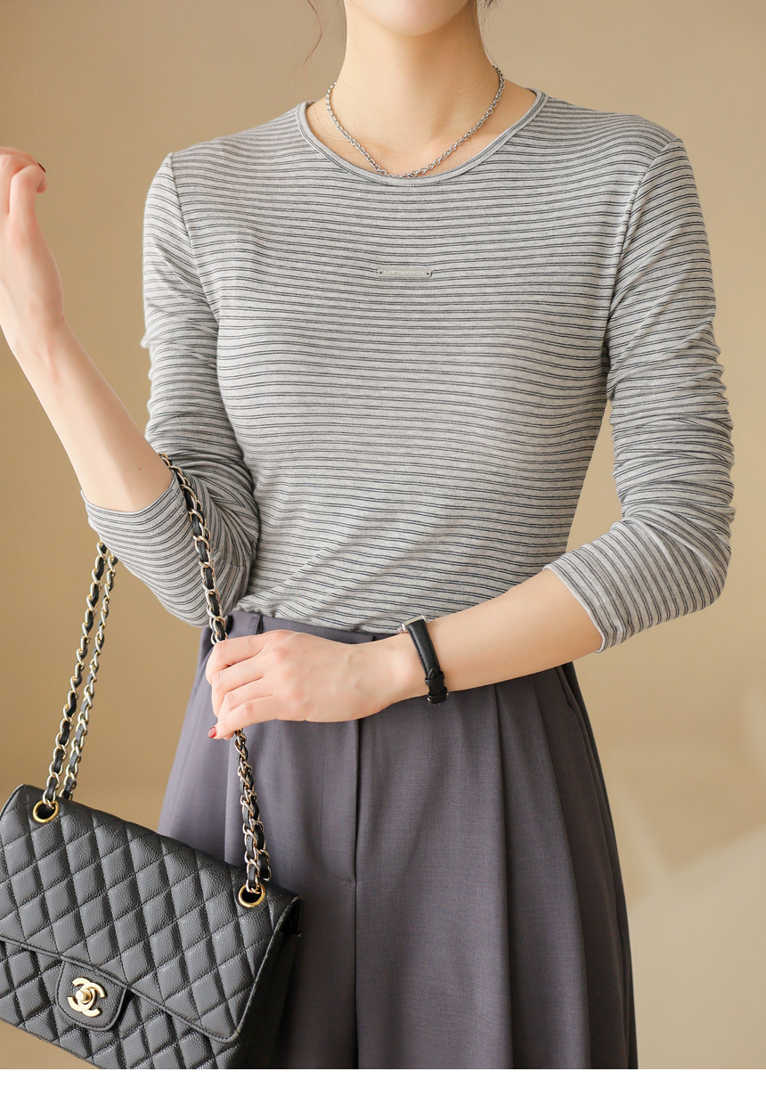 스트라이프 보들보들 터치감 라운드 긴팔 티셔츠