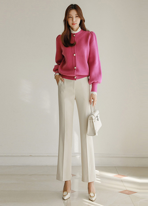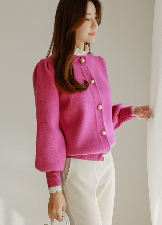 퍼프소매와 진주버튼으로 세련된