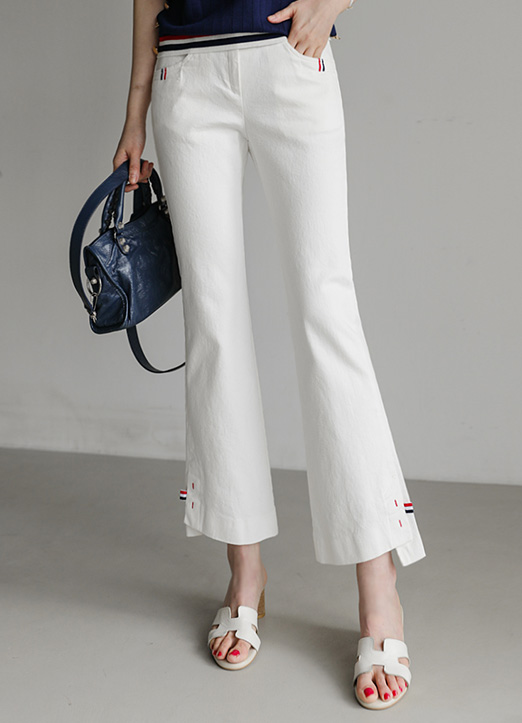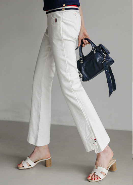 무릎아래로 퍼지는 부츠컷 디자인으로