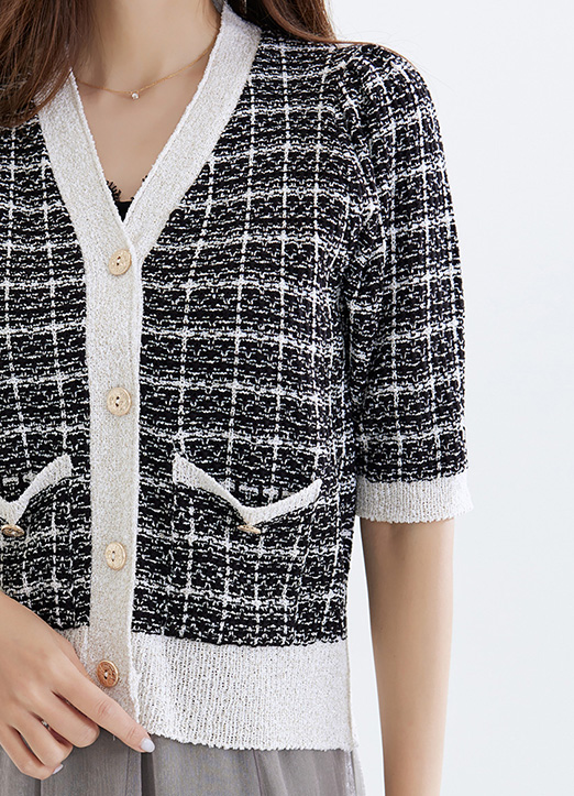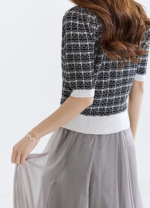 트위드 원단처럼 컬러가 믹스되어 짜여진 니트에