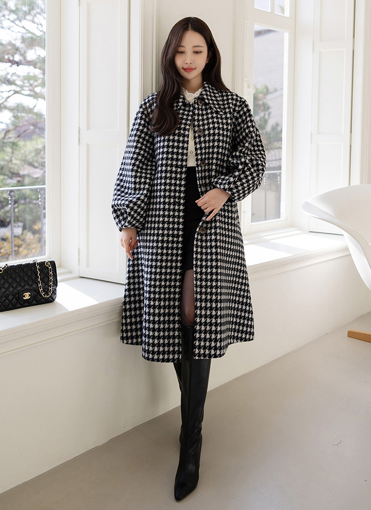 플레어 라인과 봉긋한 퍼프소매로 러블리함이 가득 느껴지는 코트에요 :)