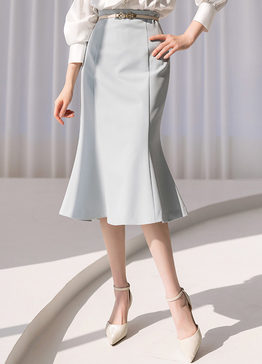 Get the voluminous mermaid look with this lovely skirt, available in basic and soft pastel colors. The slim waist and flared hemline create a flattering feminine silhouette, while the back slit adds comfort and ease of movement.