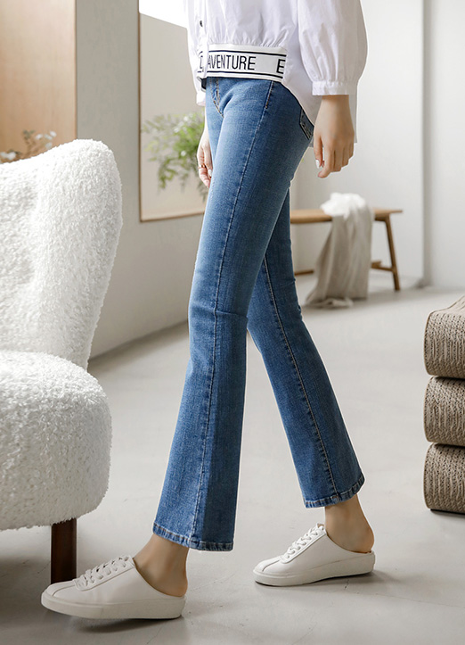 • Elastic Waist Ankle-Length Semi Boot-Cut Jeans
