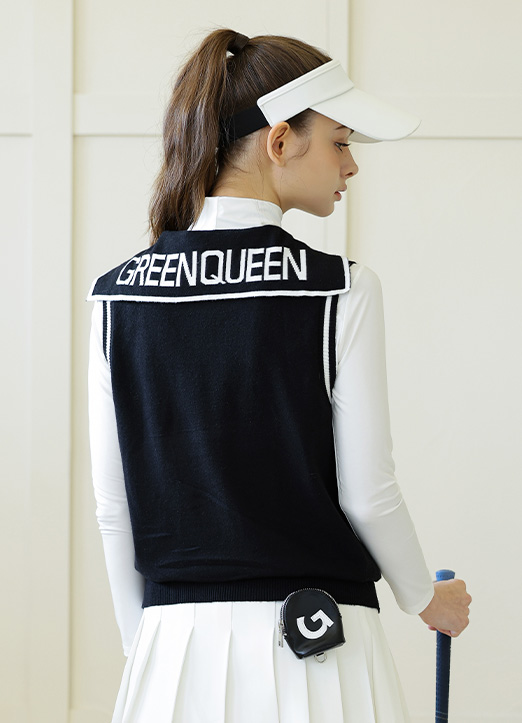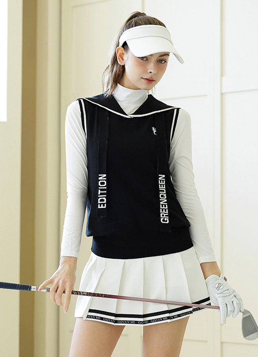 • [QoG] Contrast Trim Lettering Sailor Collared Sleeveless Knit Top