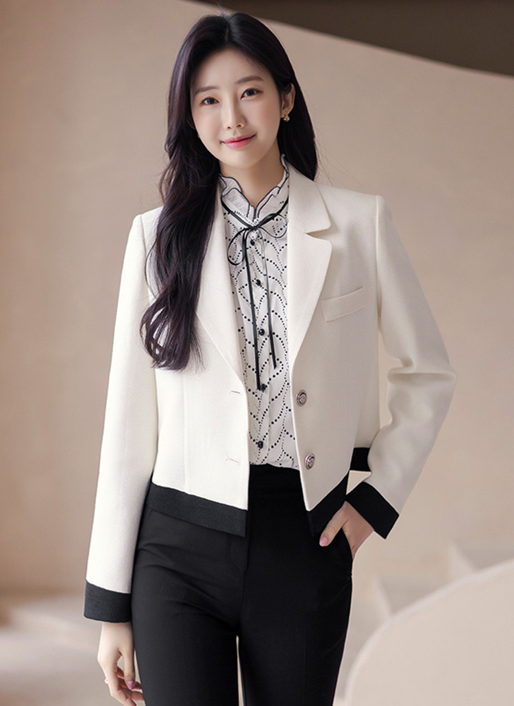 • [LouisAngel] Contrast Trim Two-Button Tailored Jacket