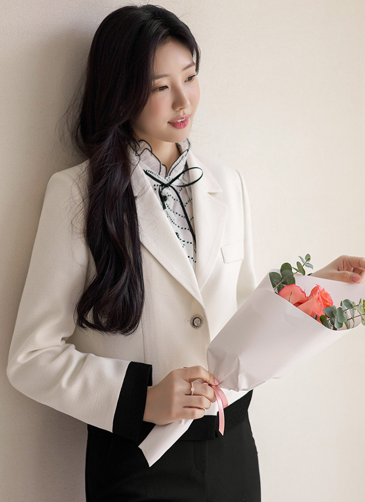 세미크롭 기장으로 다양한 룩에 매치하기 좋은 자켓이에요 :)