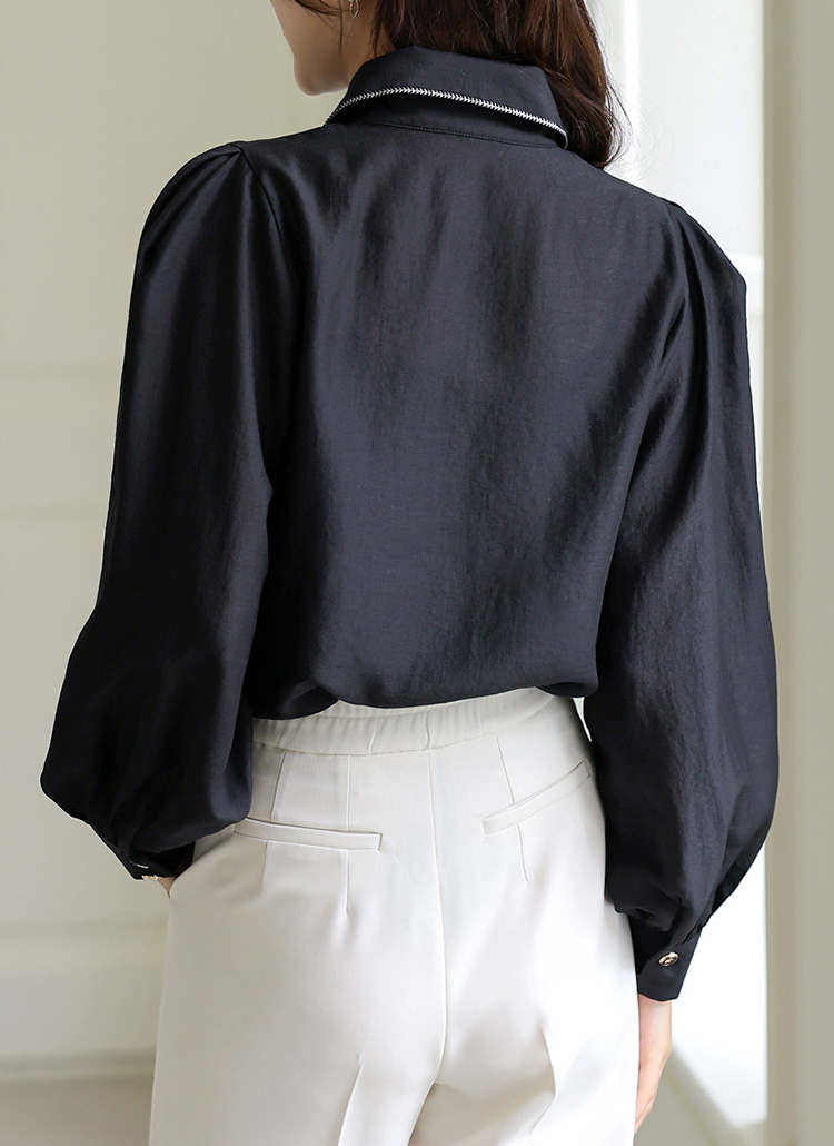 • [The Onme] Contrast Trim Puff Sleeve Relaxed Shirt