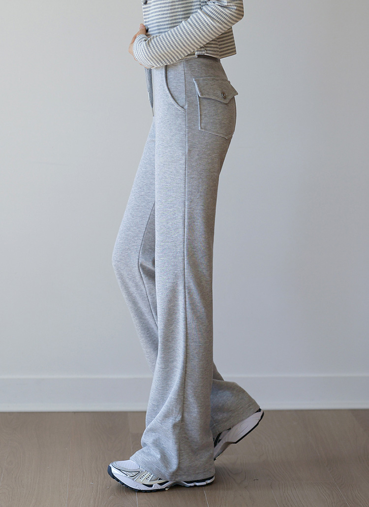 트렌디한 플랩 포켓 디테일과 롱한 부츠컷 라인으로