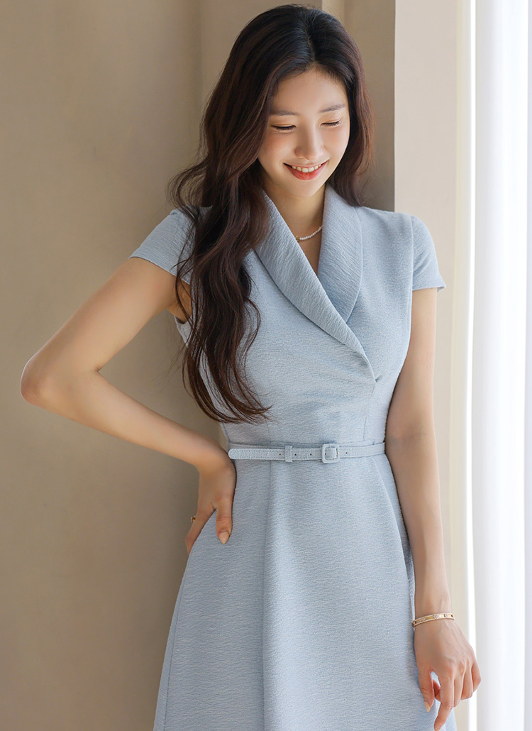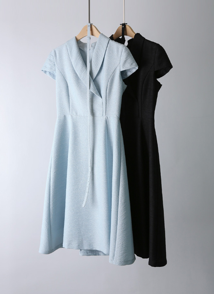 • With a soft shawl collar, cap sleeves, and full flare skirt, this belted dress adds effortless elegance to your summer wardrobe.