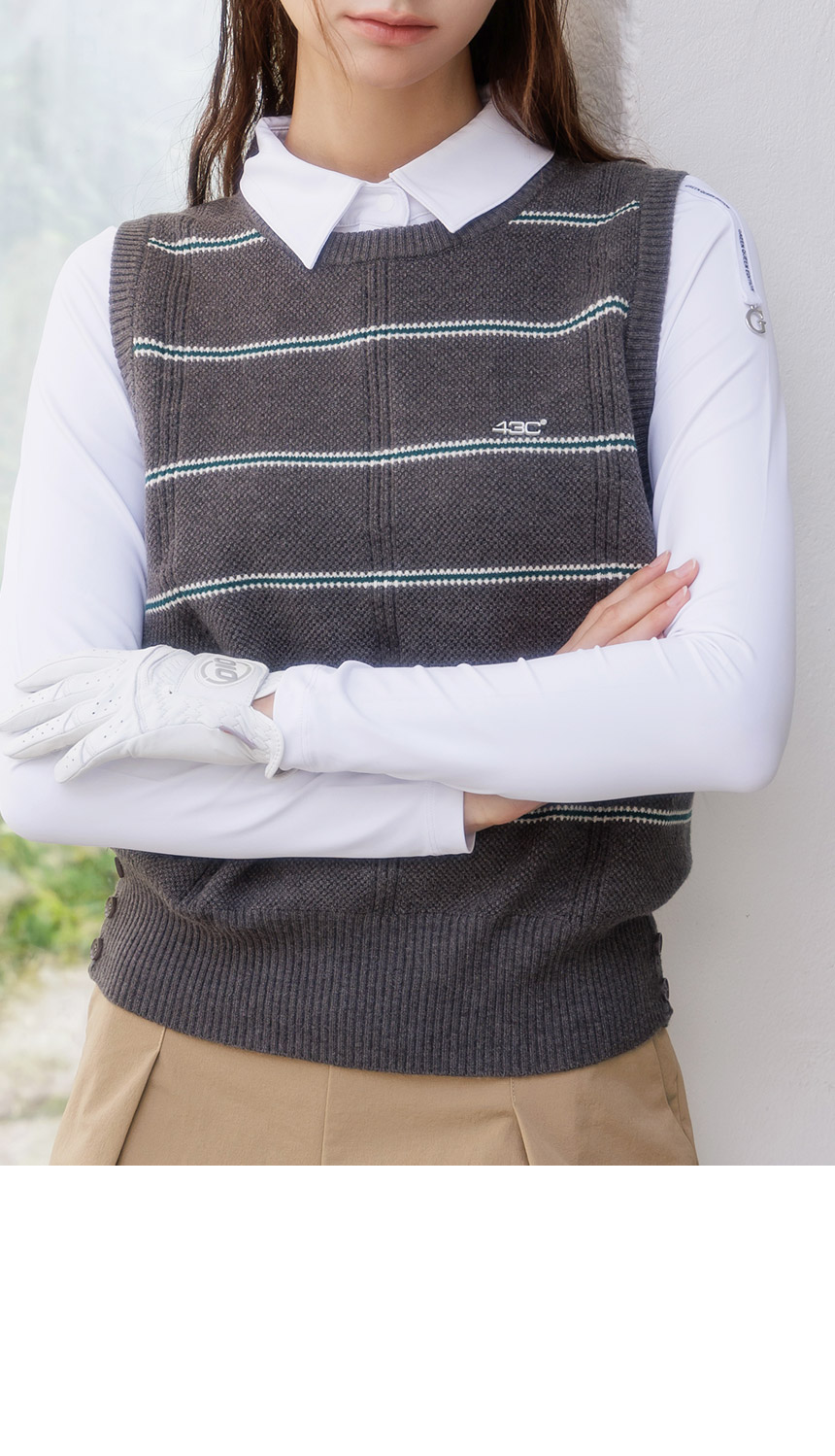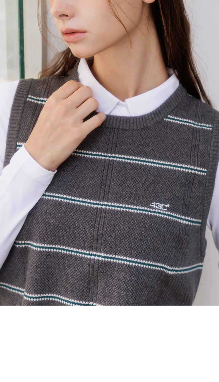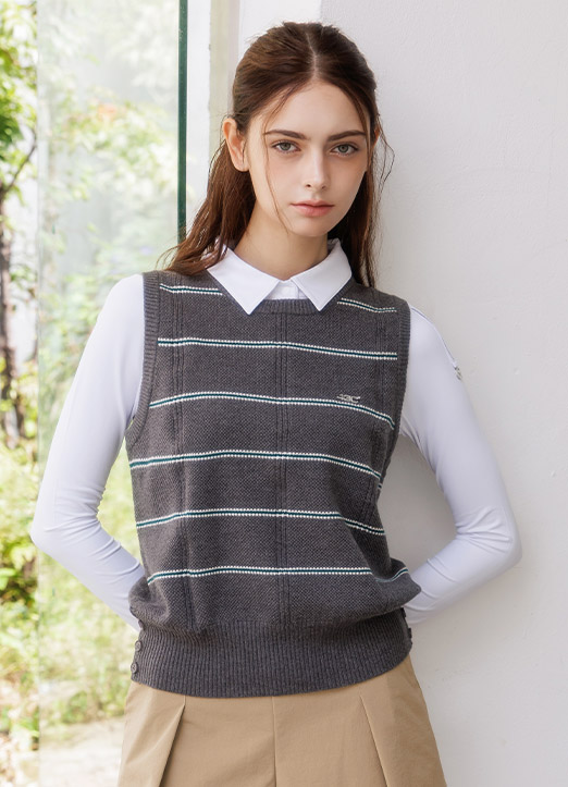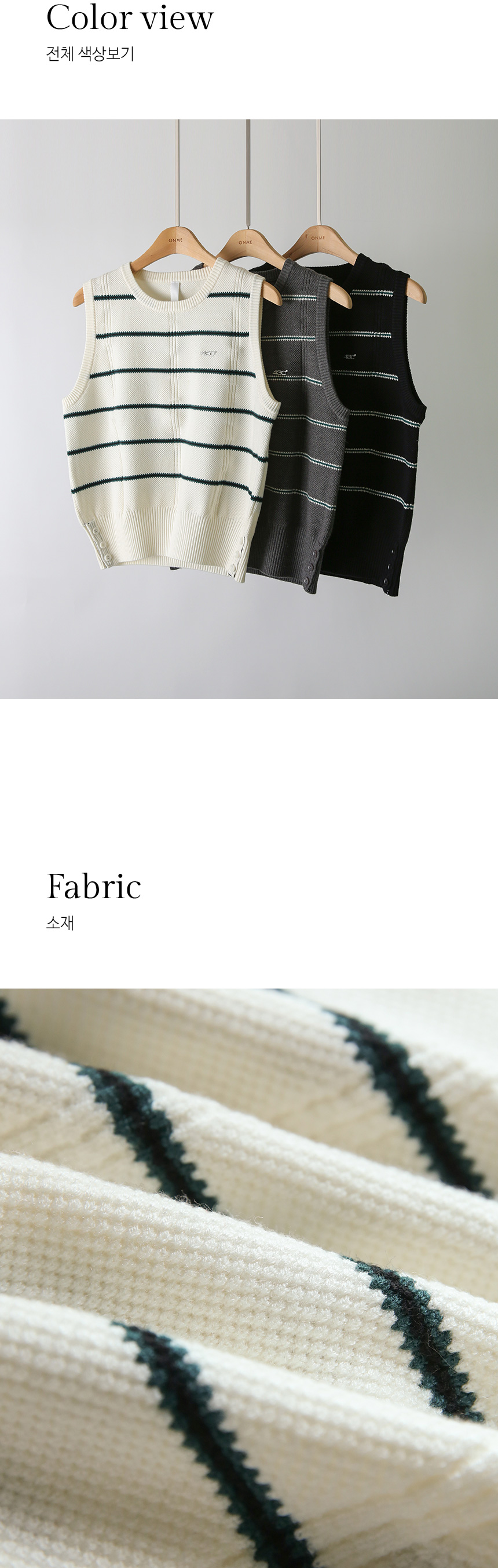 고급스러운 짜임과 스트라이프 패턴이 돋보이는 니트 베스트입니다.