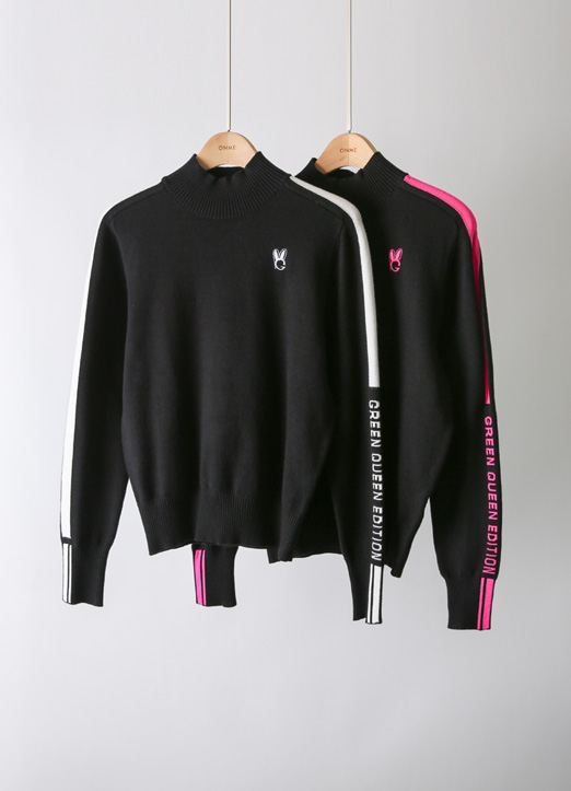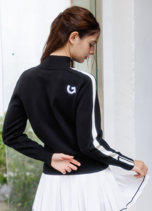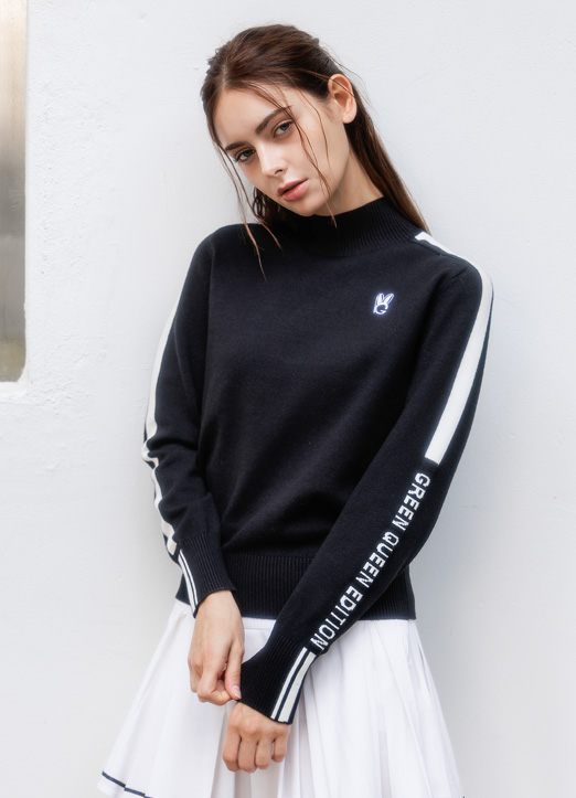 • [QoG] Sporty Stripe Mock Neck Knit Top