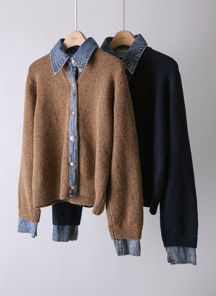 셔츠와 가디건이 레이어드된 듯한 배색 디자인으로