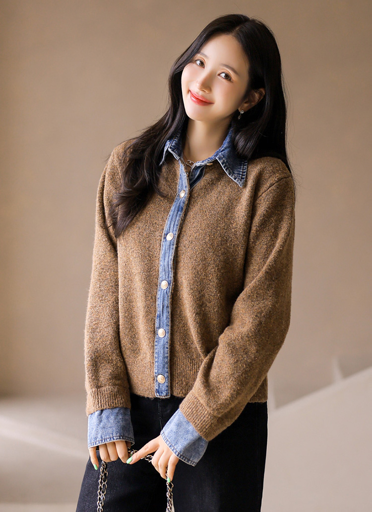 • Denim Layered Knit Cardigan