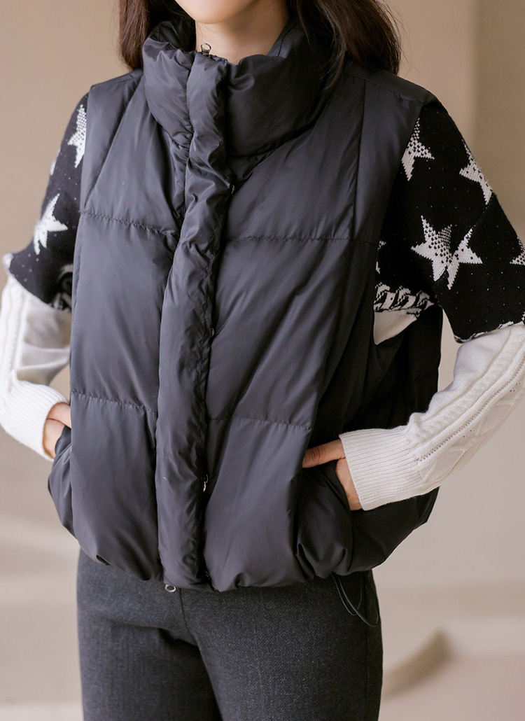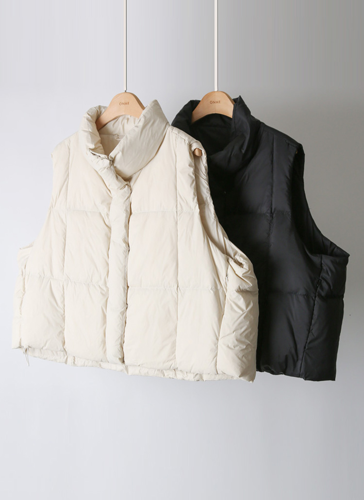 포근한 따뜻함과 스타일리시한 실루엣을 동시에 잡은 오리털 패딩 베스트에요 :)