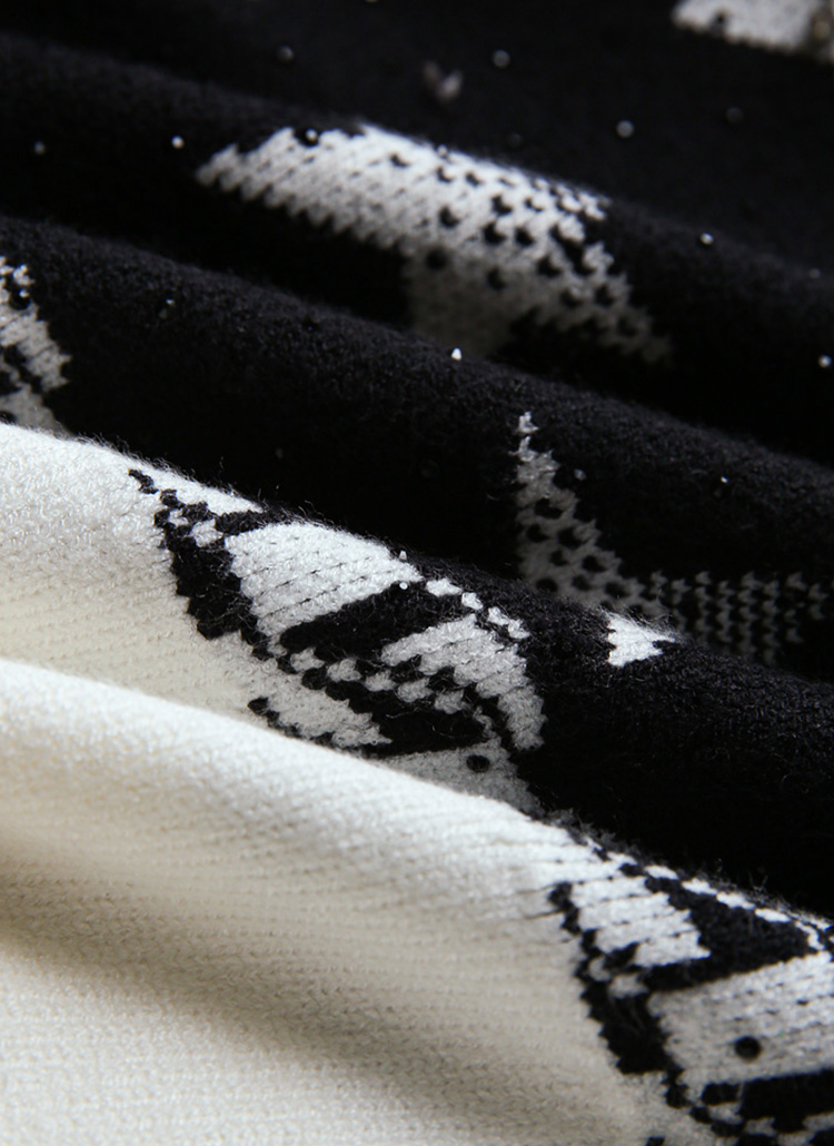 • A mix of shimmering accents and bold star patterns gives this knit a chic glow, perfect for pairing with high-waist skirts or pants.