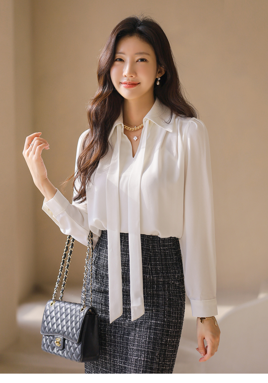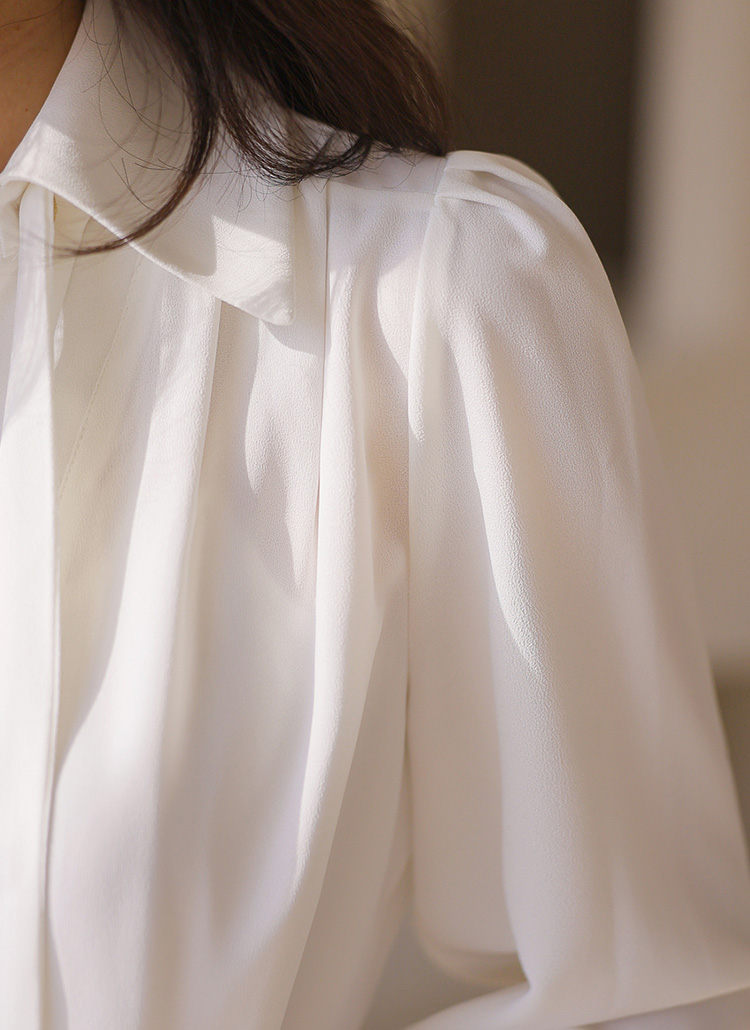 섬세한 디테일이 더해져 럭셔리하고 우아한 페미닌 무드를 선사하는 블라우스에요