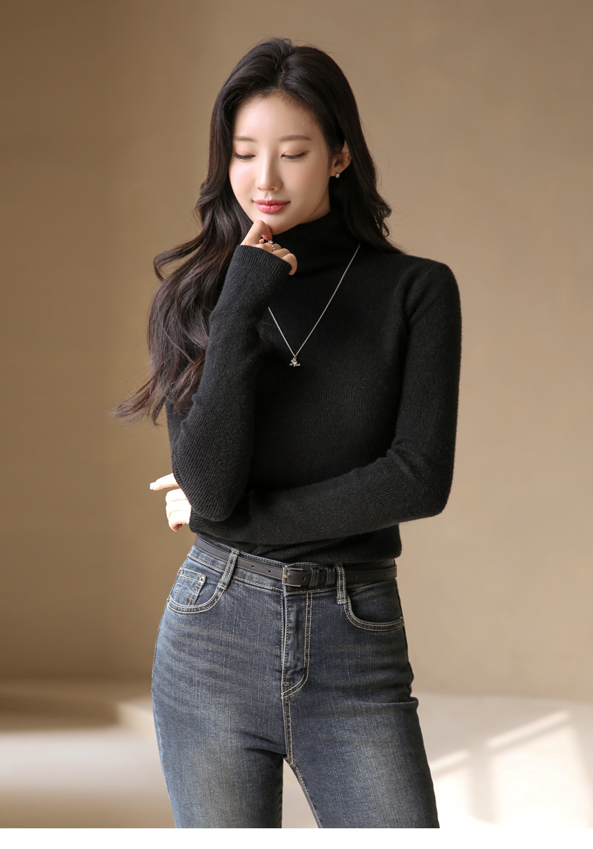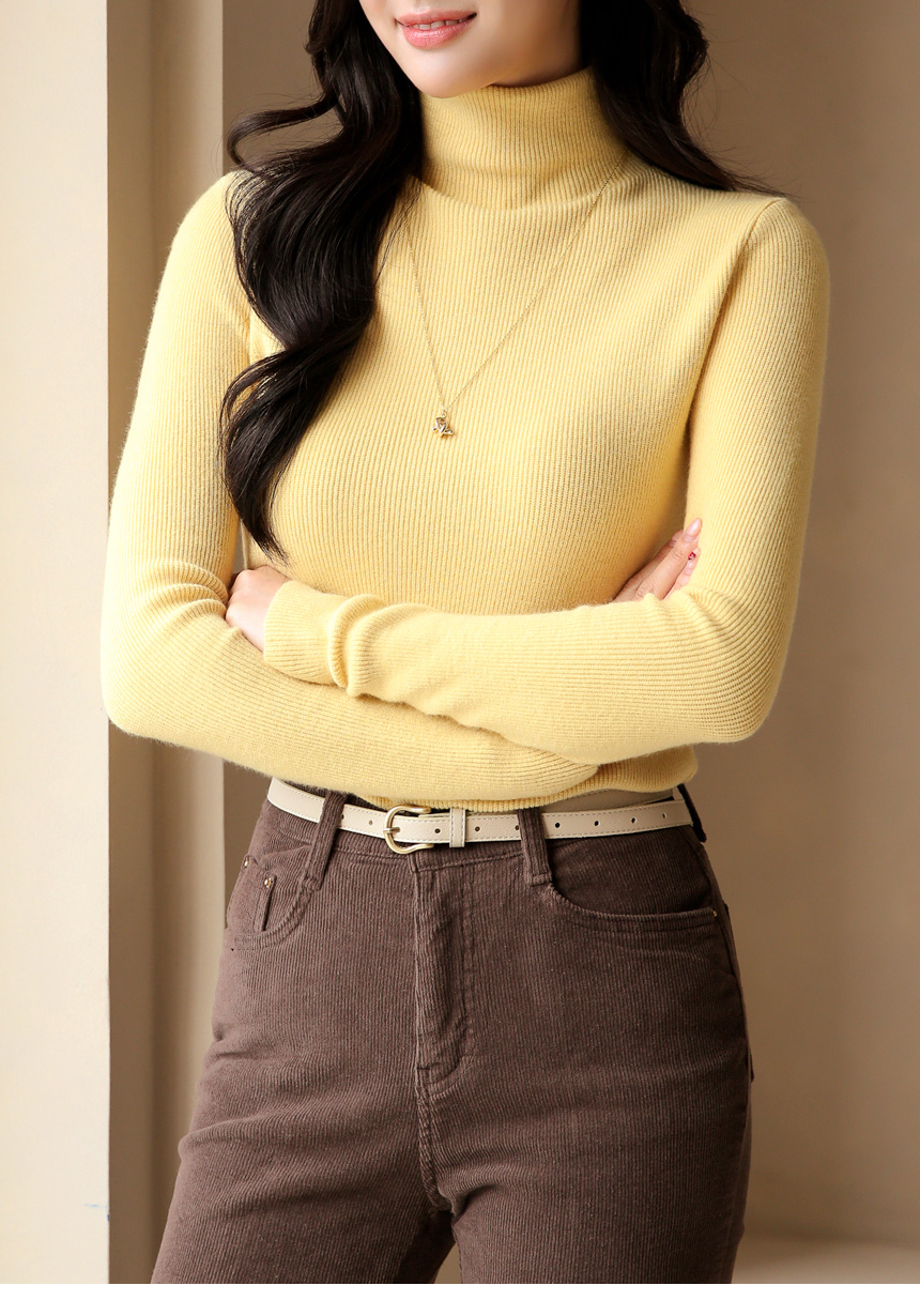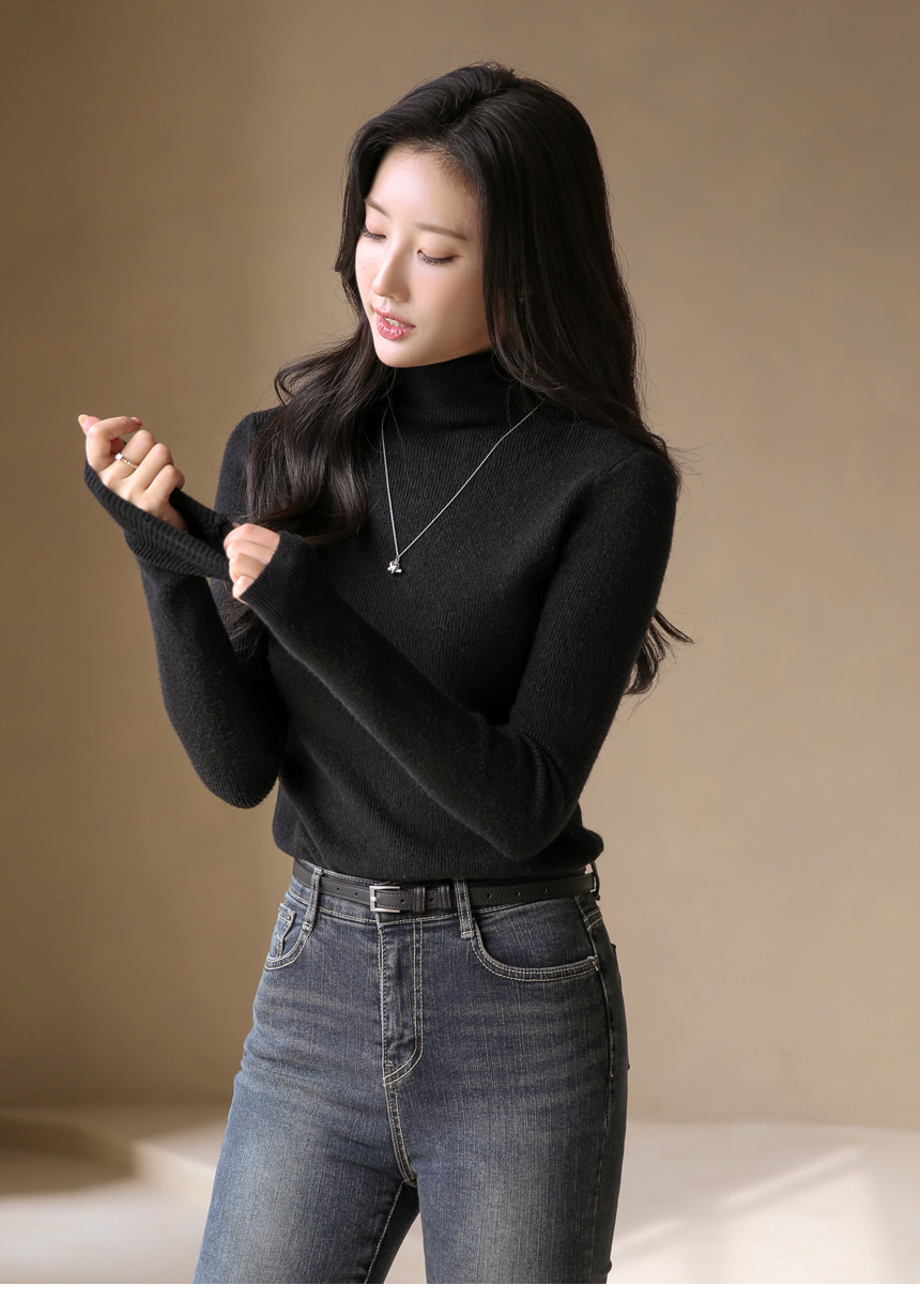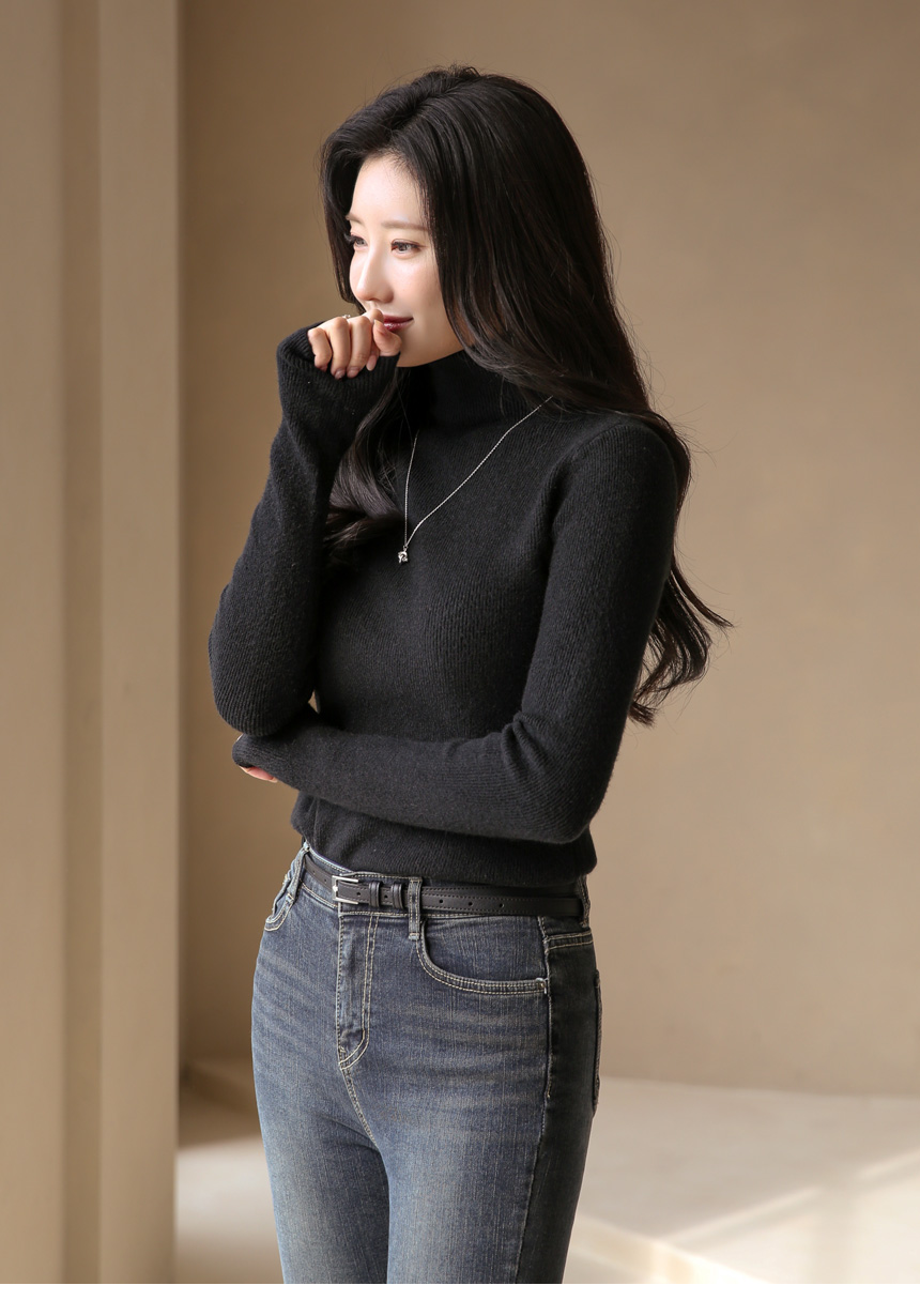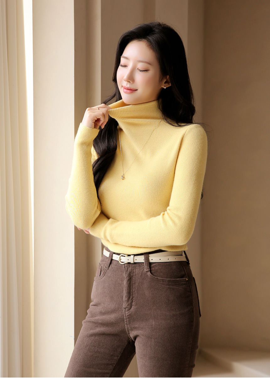 • (5 Colors) Cozy Ribbed Slim Turtleneck Knit Top