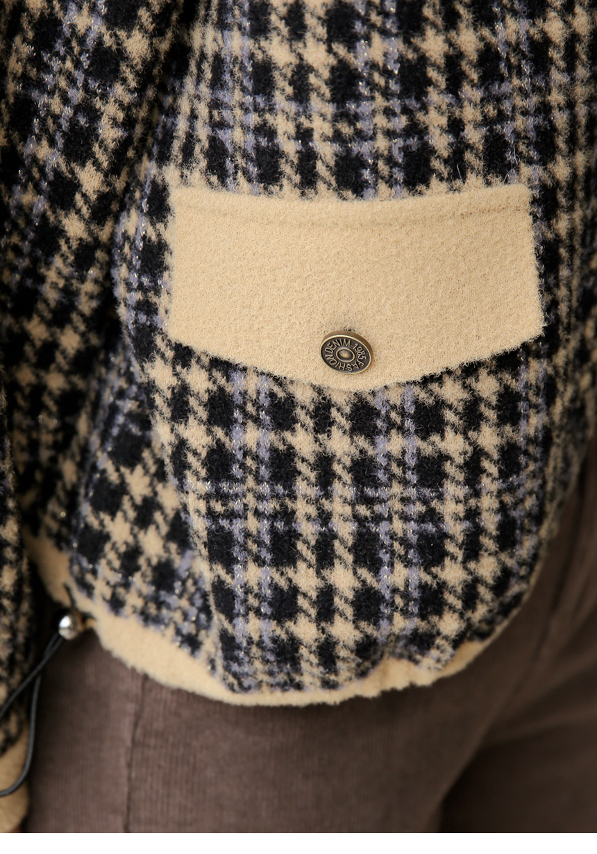 • Designed with a plush knit texture and warm color contrasts, this jacket adds gentle structure with dropped shoulders and a drawcord hem for shape control.