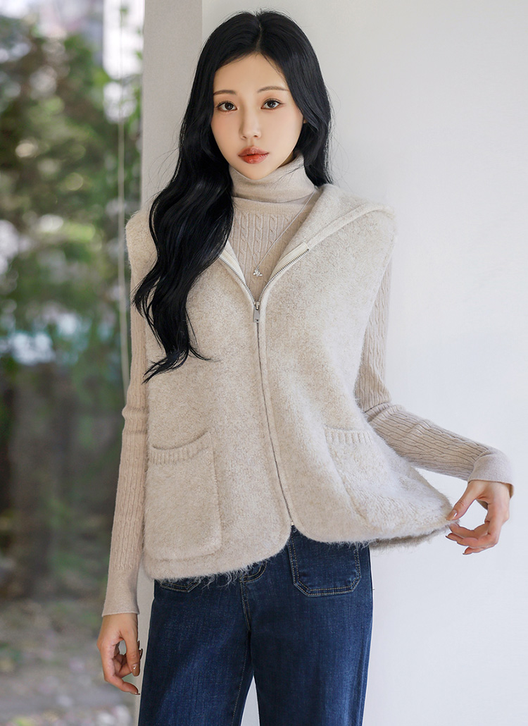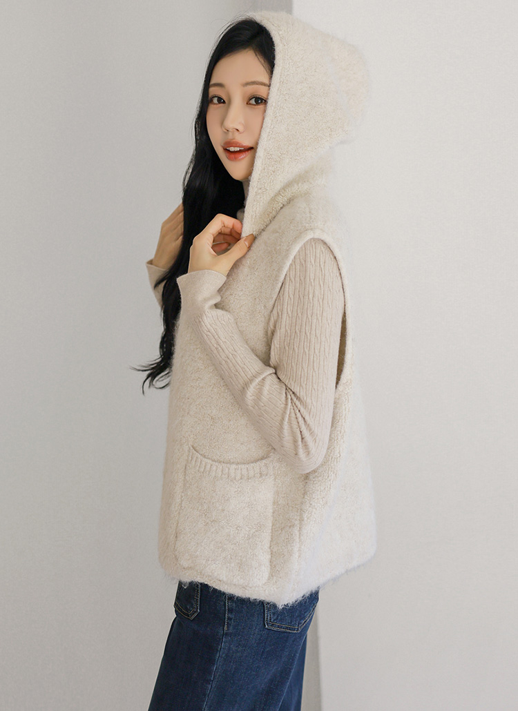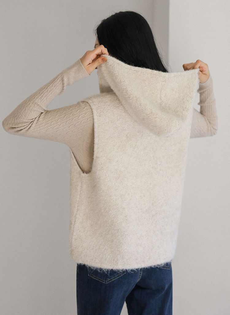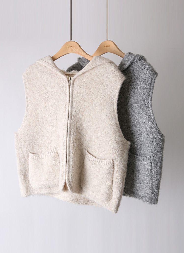 • [The Onme] Cozy Fleece Touch Hood Zip-Up Vest