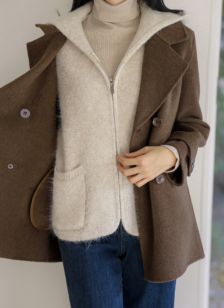 • This plush zip-up vest features a gentle wool mix and roomy silhouette, adding natural warmth and casual charm to everyday outfits through the cold season.
