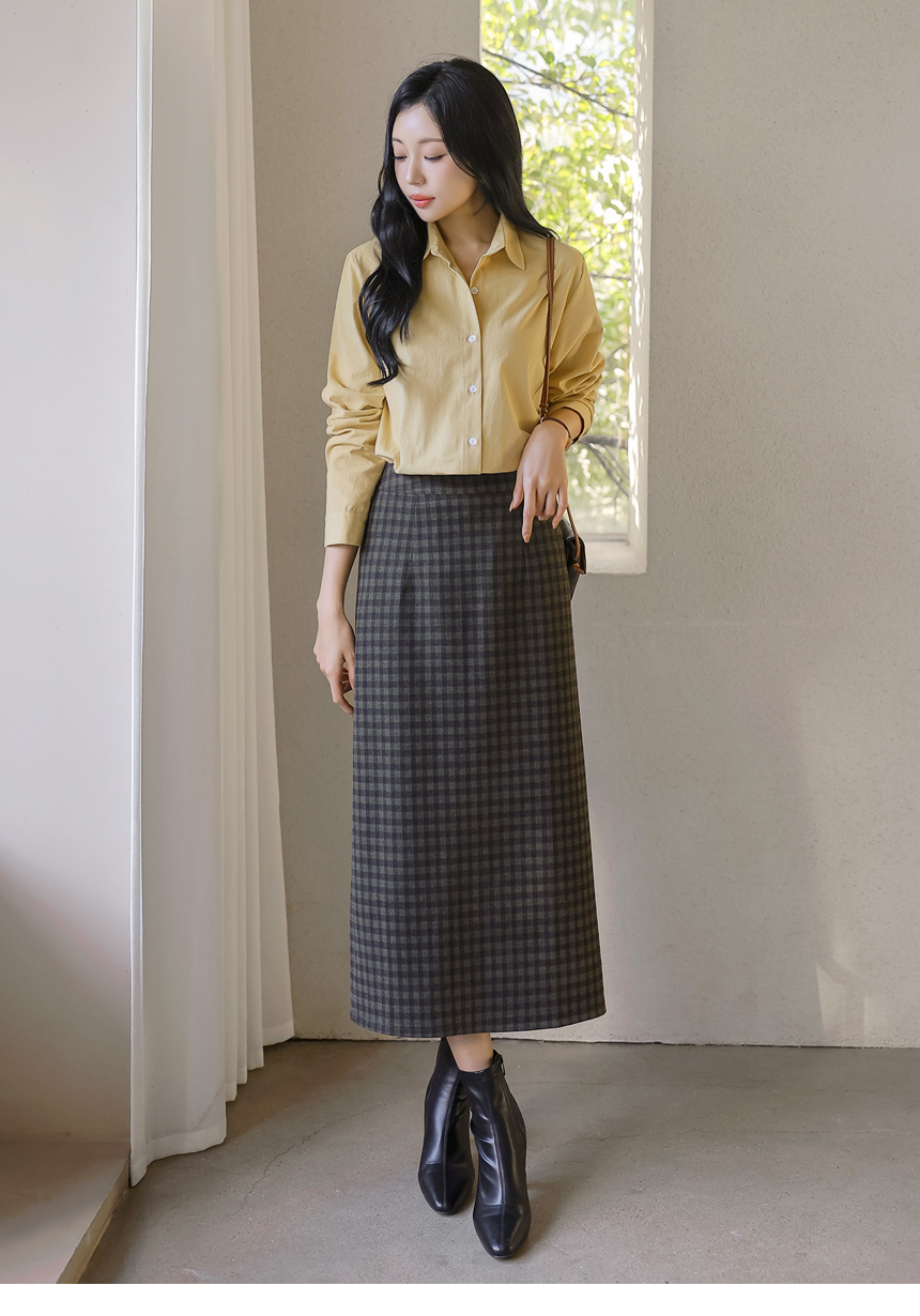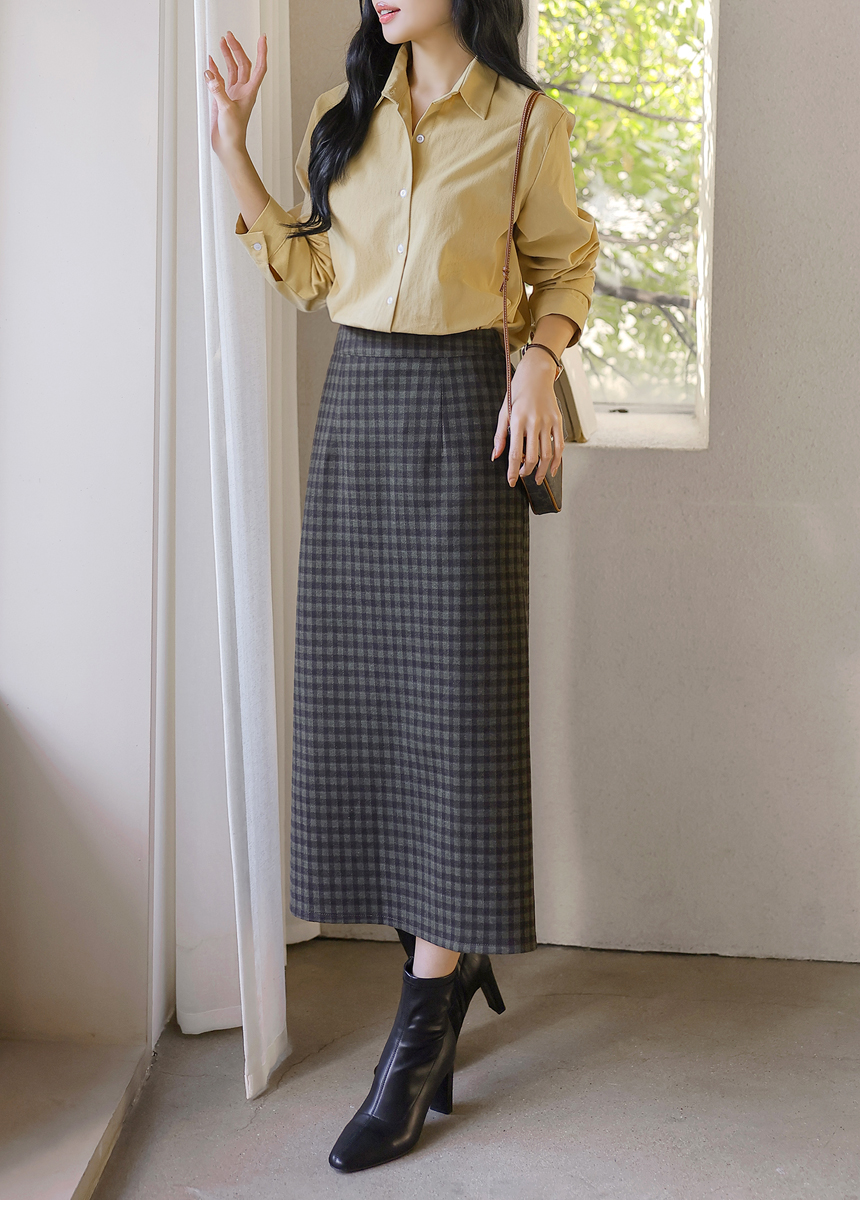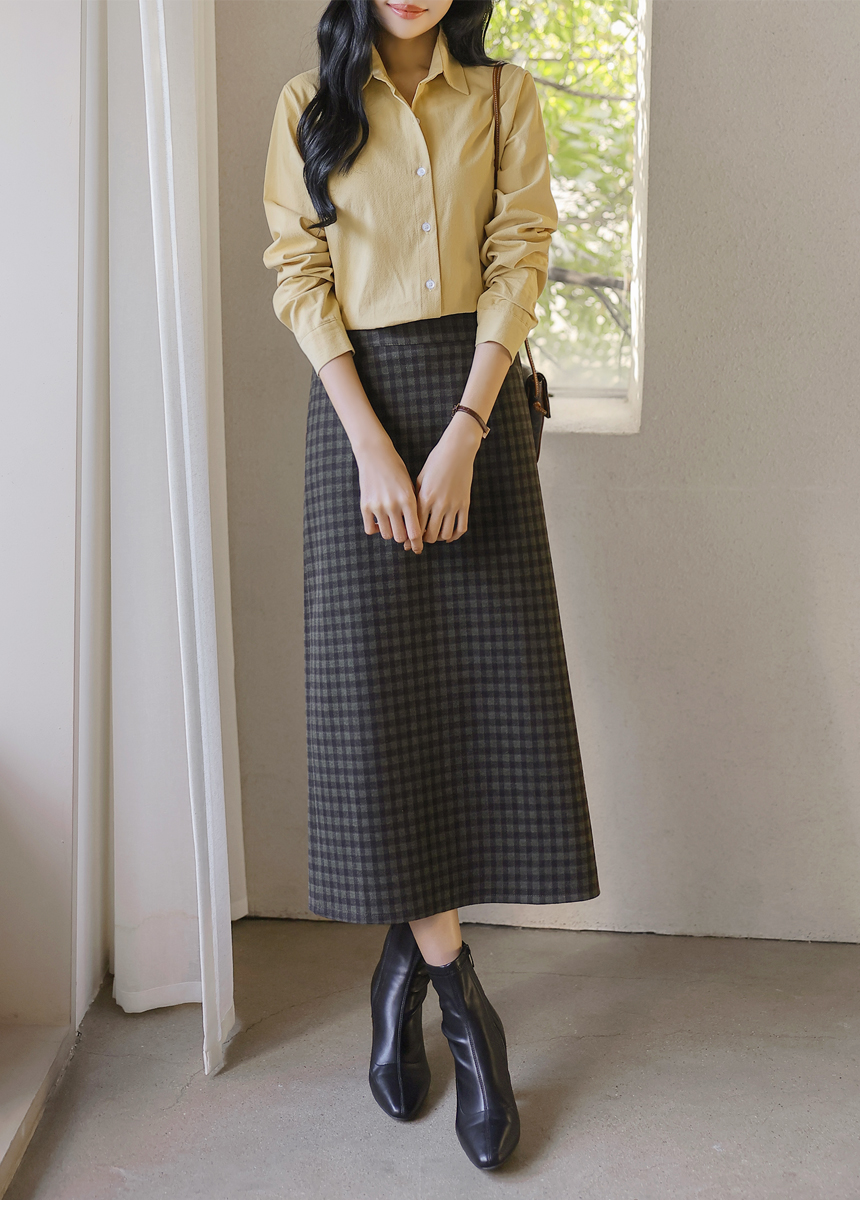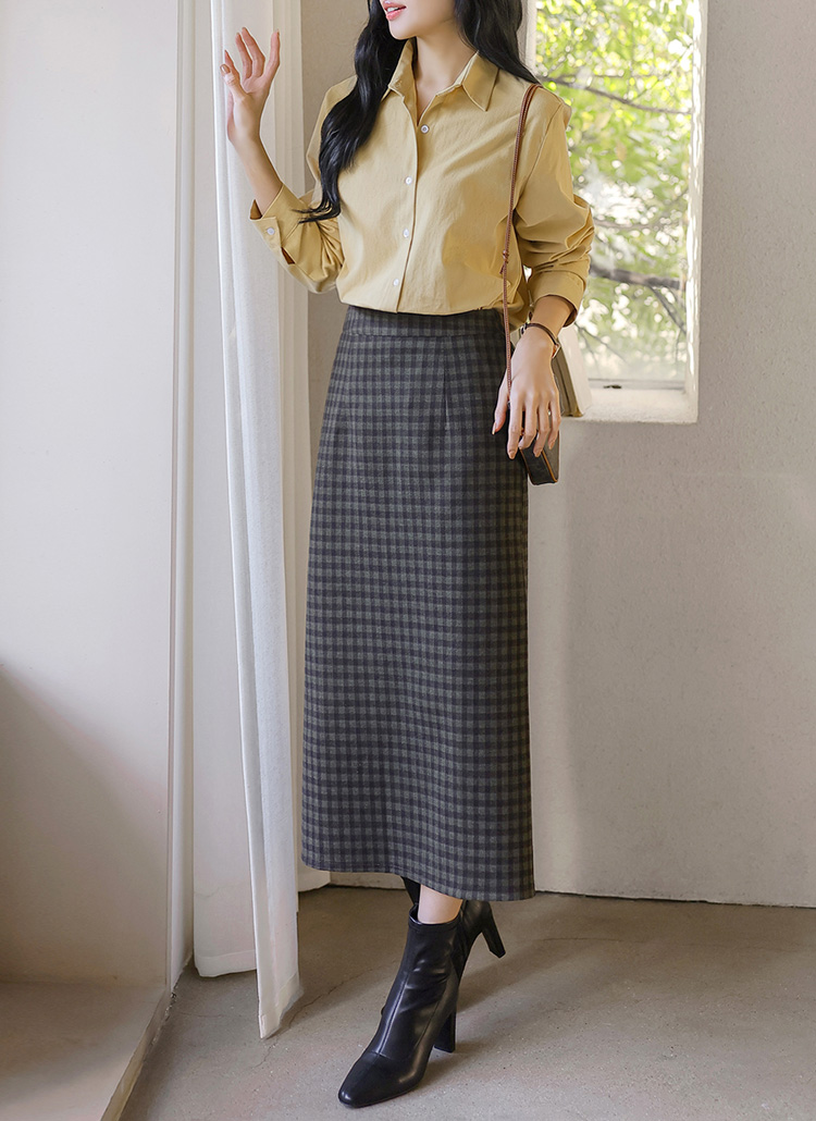 • [The Onme] Warm Check Back-Slit Midi Skirt
