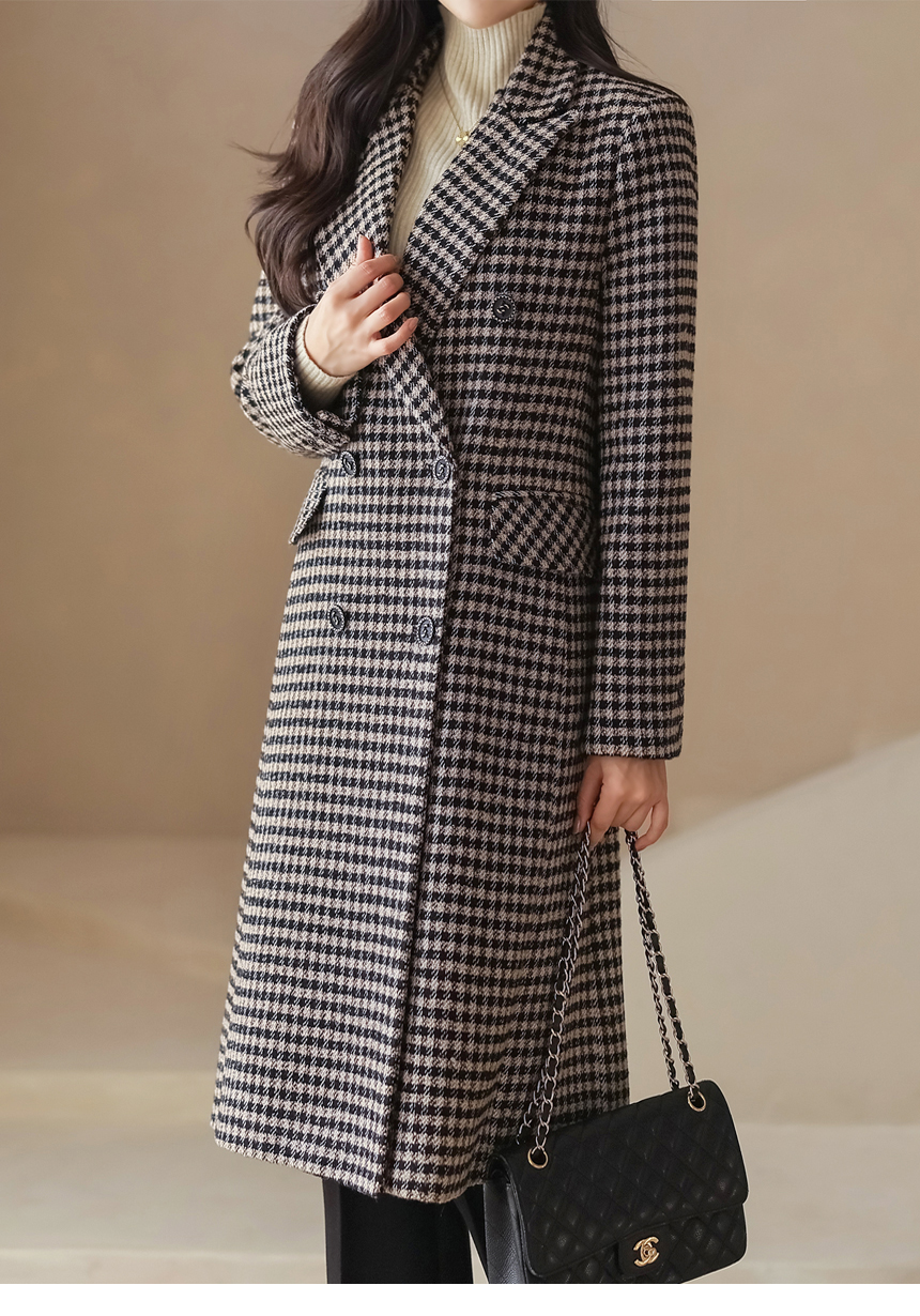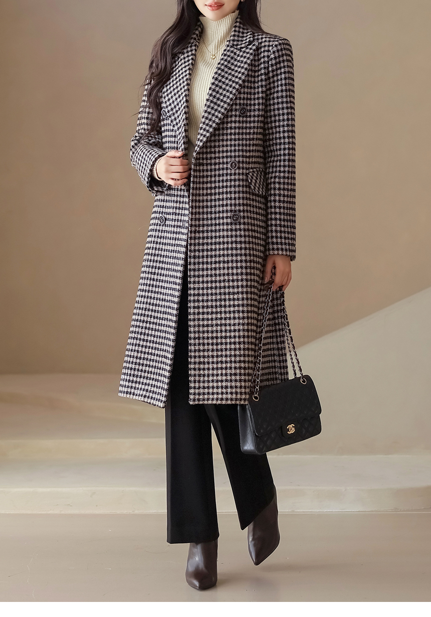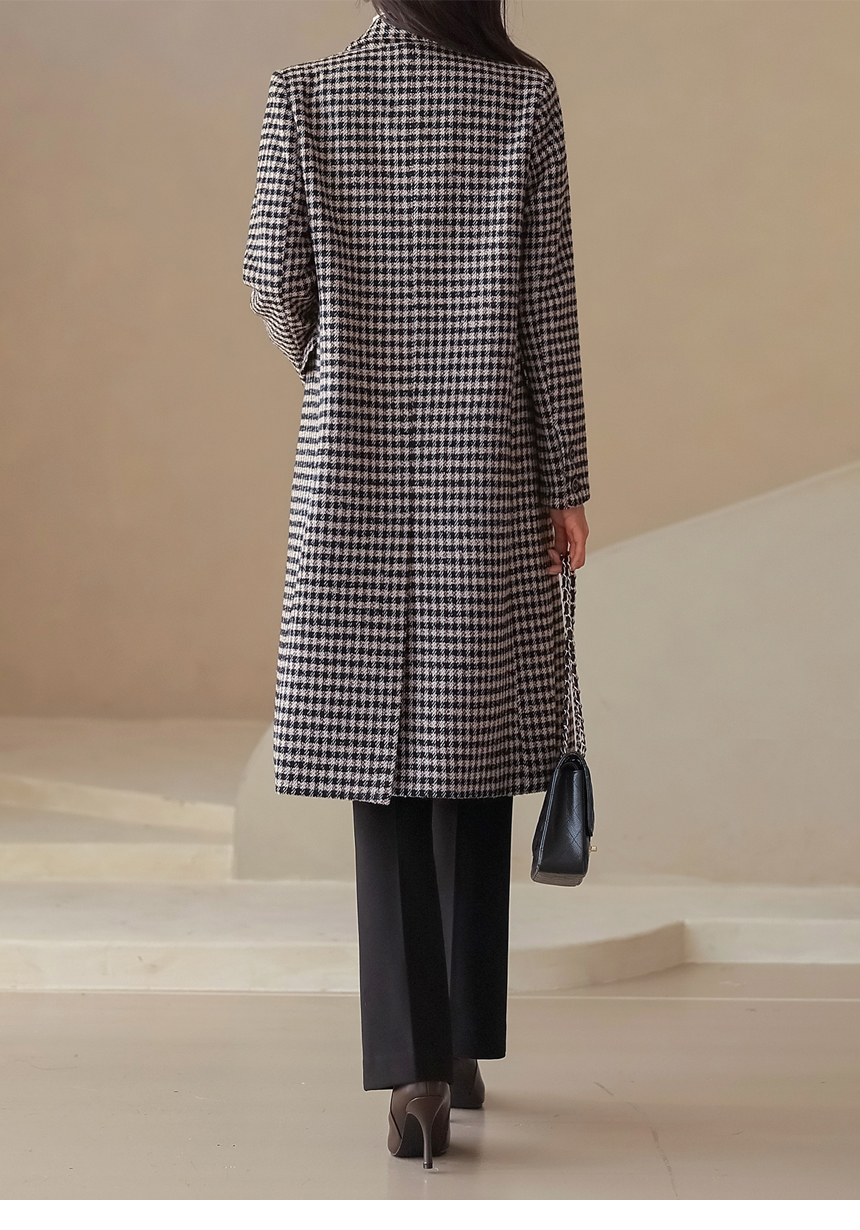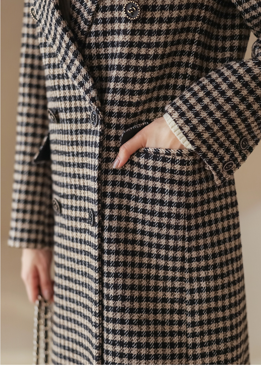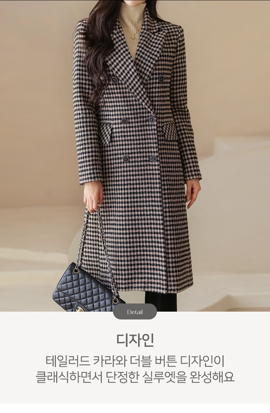 클래식한 무드가 아름답게 돋보이는 체크 롱 코트에요