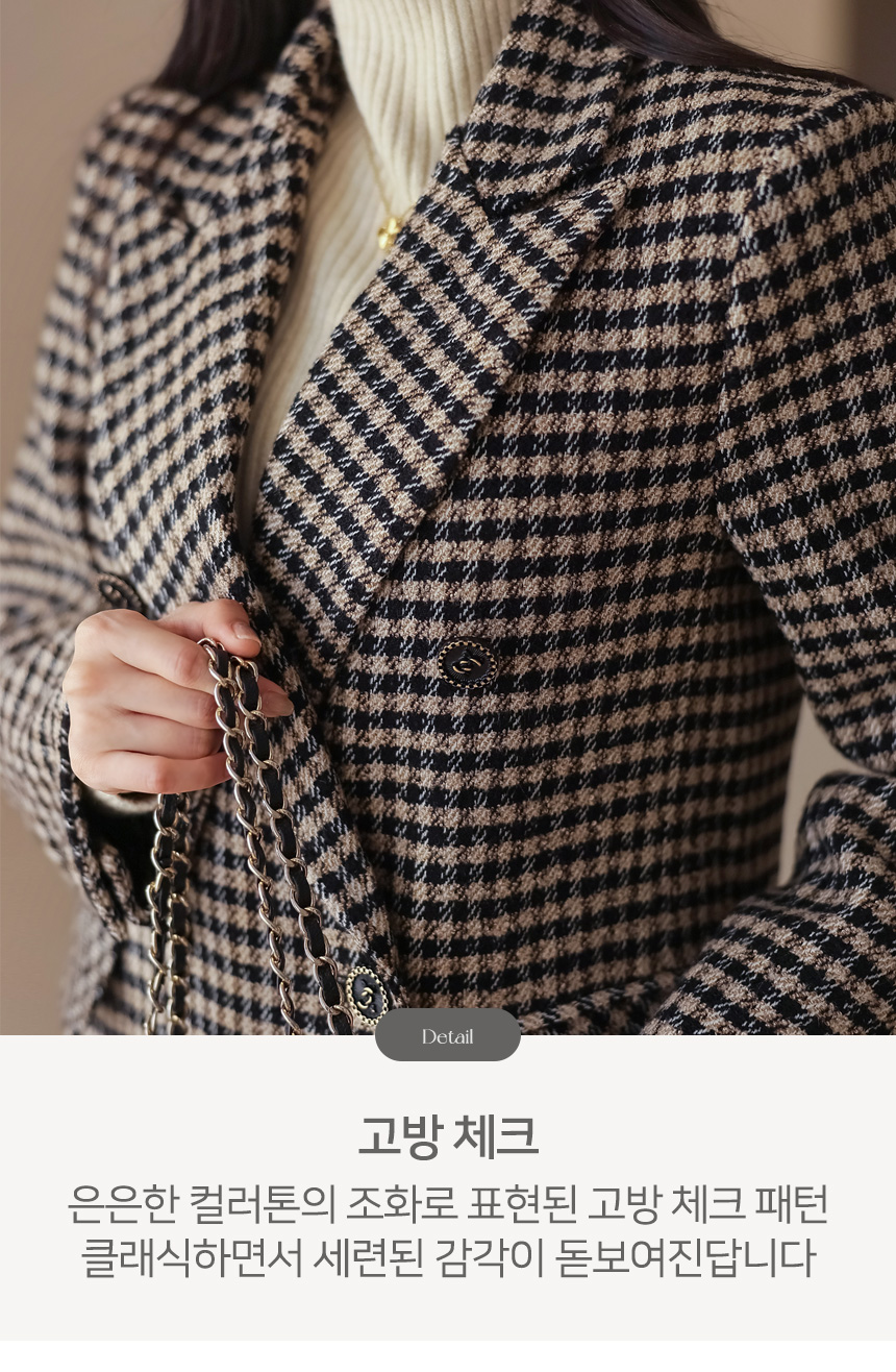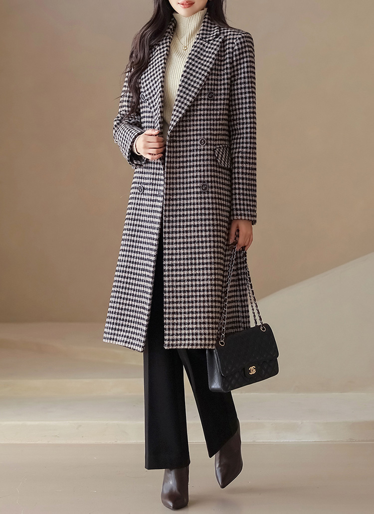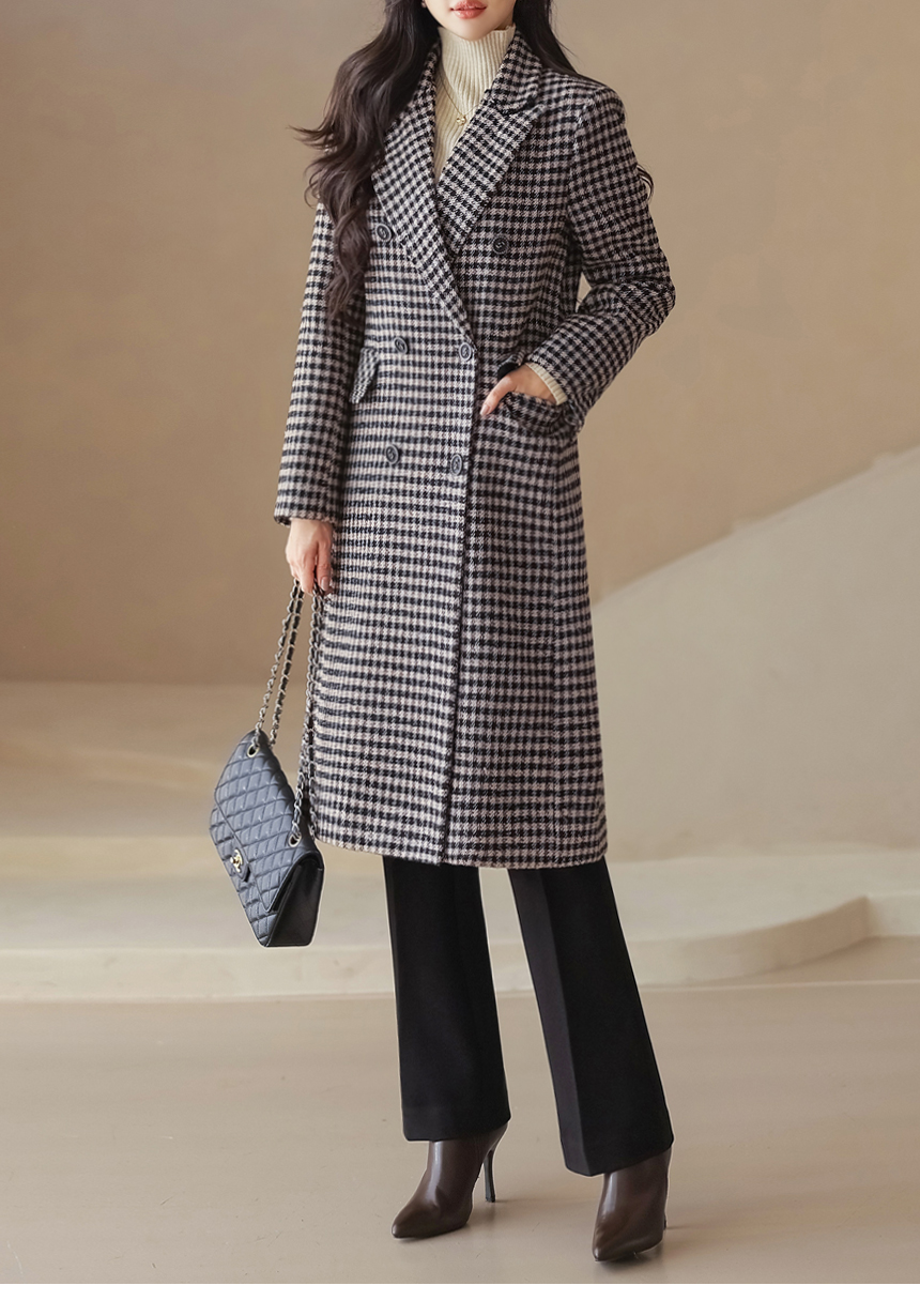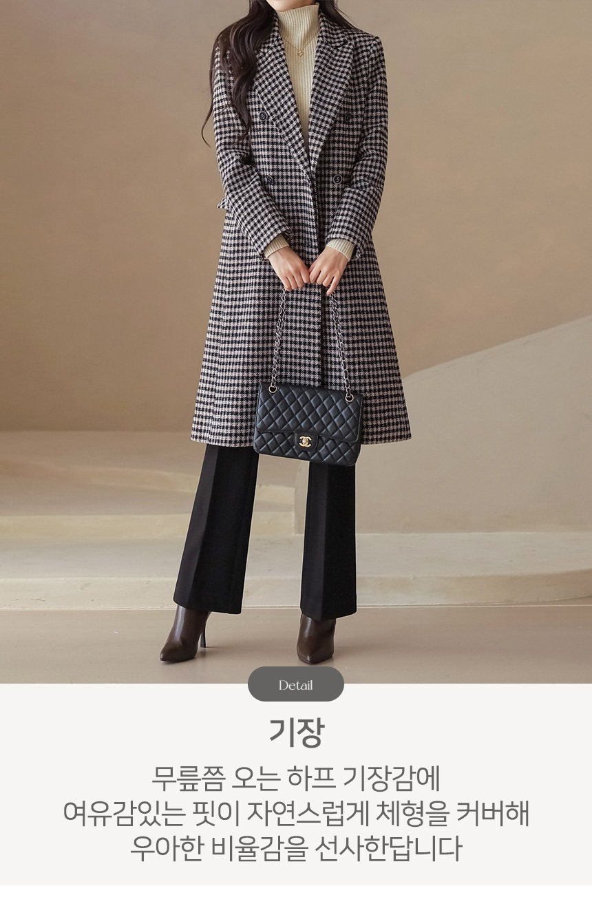 클래식한 무드가 아름답게 돋보이는 체크 롱 코트에요