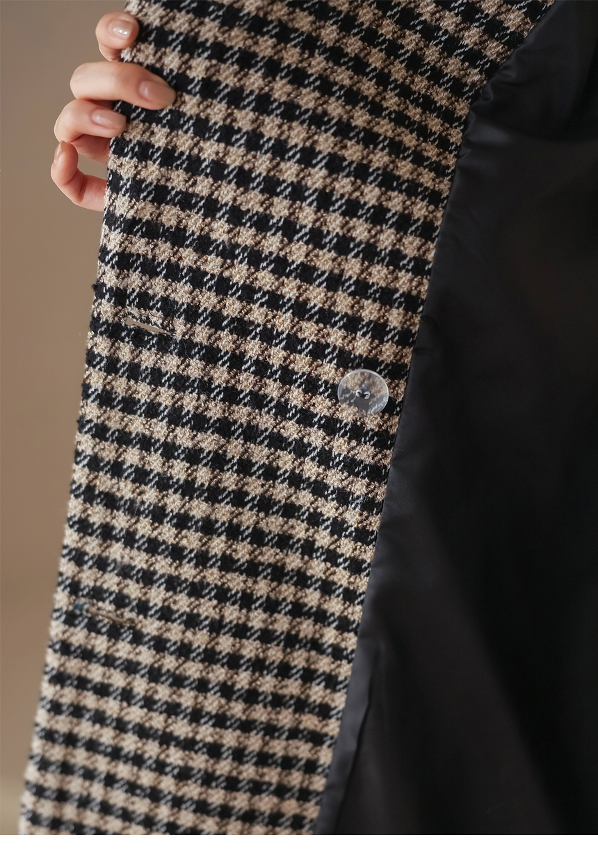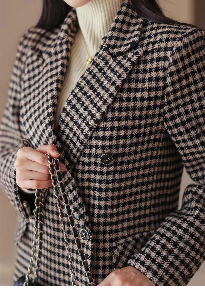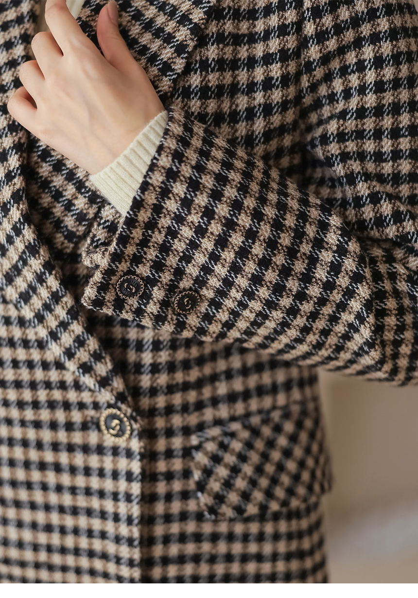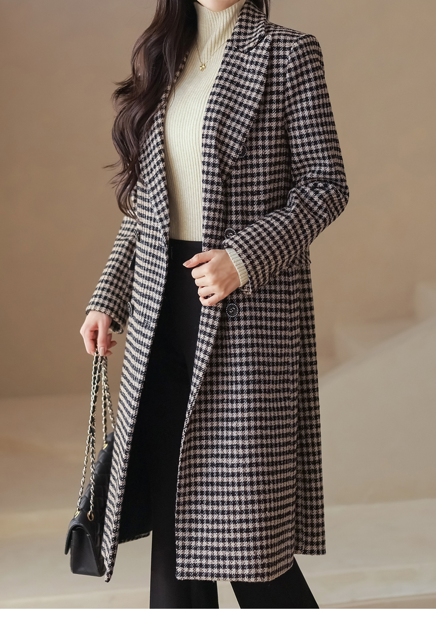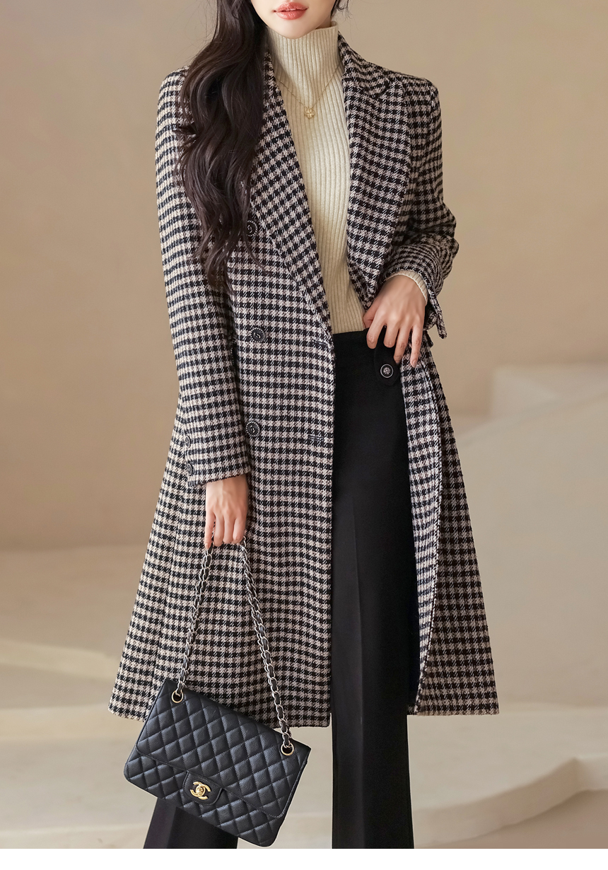 클래식한 무드가 아름답게 돋보이는 체크 롱 코트에요
