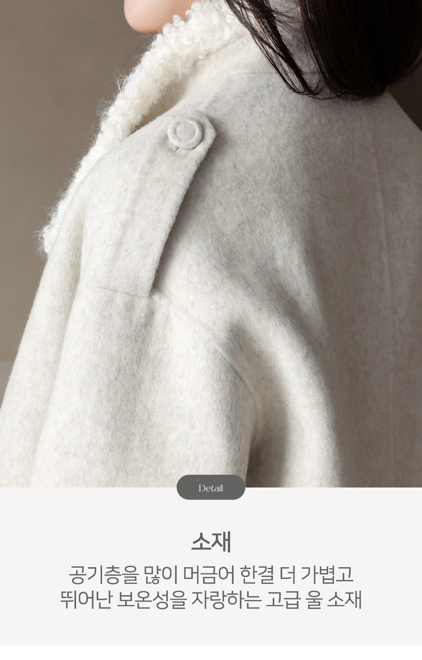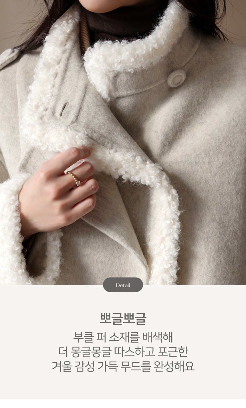 끝단과 소매단을 따라 더해진 뽀글뽀글한 양털 트리밍은