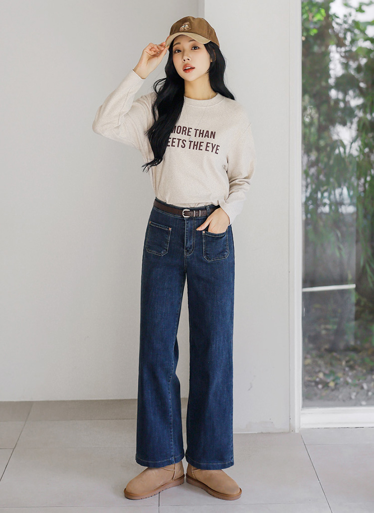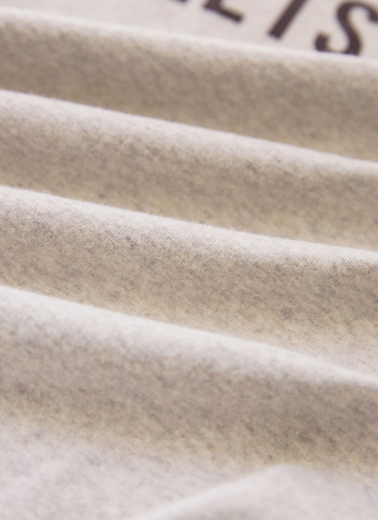 • Warm peach-finished fabric with gentle stretch offers cozy comfort, while understated lettering adds a relaxed, stylish accent for effortless daily wear.