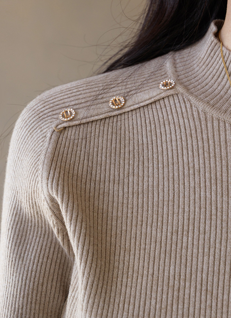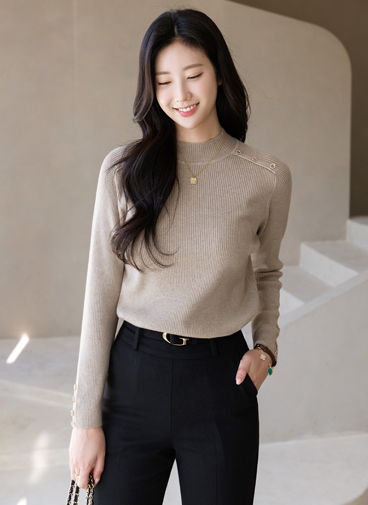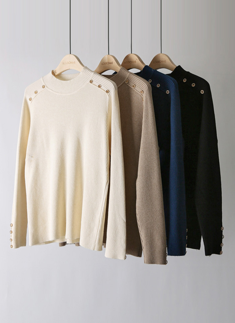 • Minimal button details highlight the shoulder & cuff line, while the cozy ribbed texture and smooth touch create a feminine, sophisticated look for fall and winter.