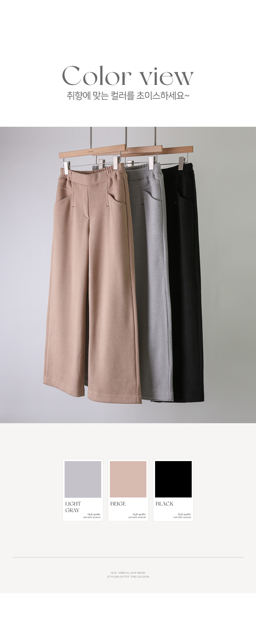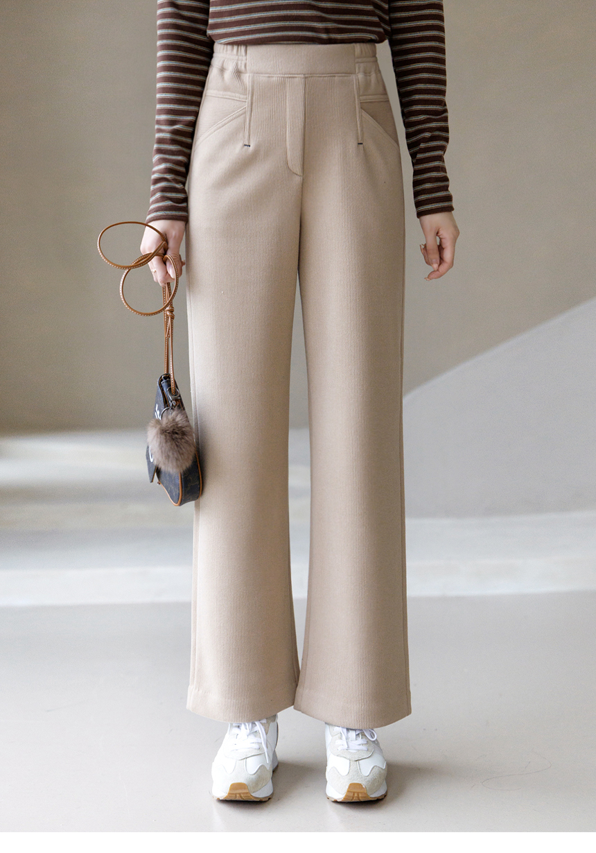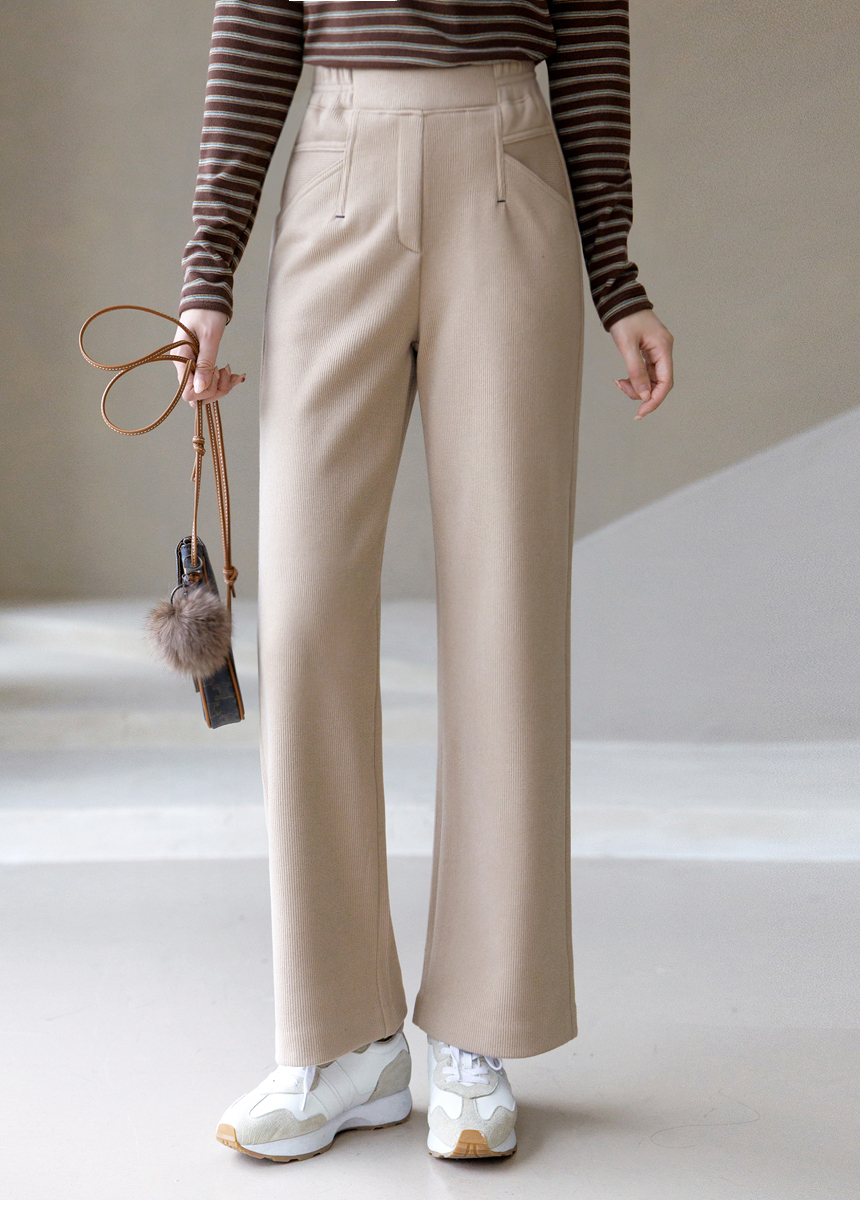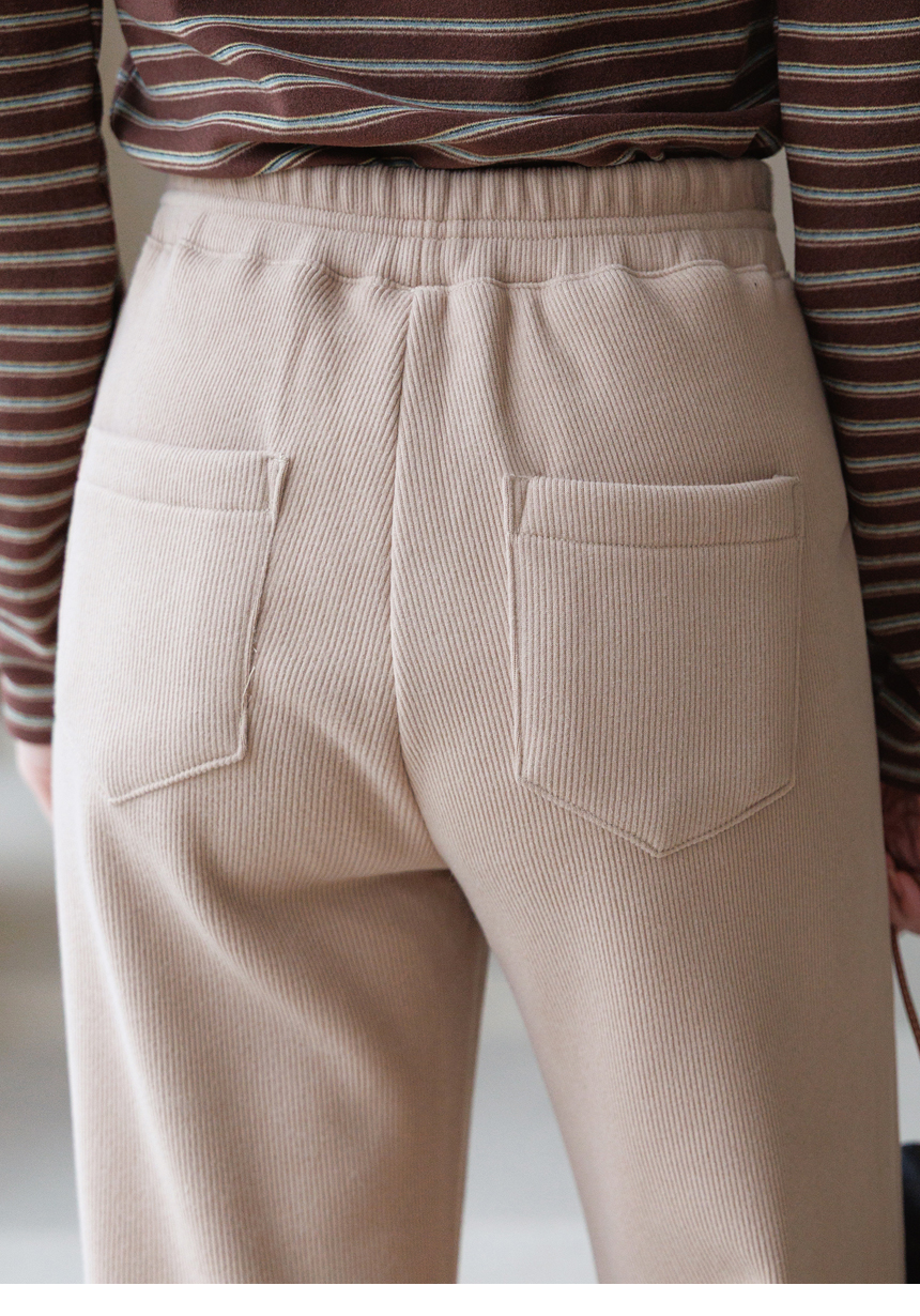 • 세이브 허리 밴딩 사선 포켓 골지 세미 와이드 팬츠