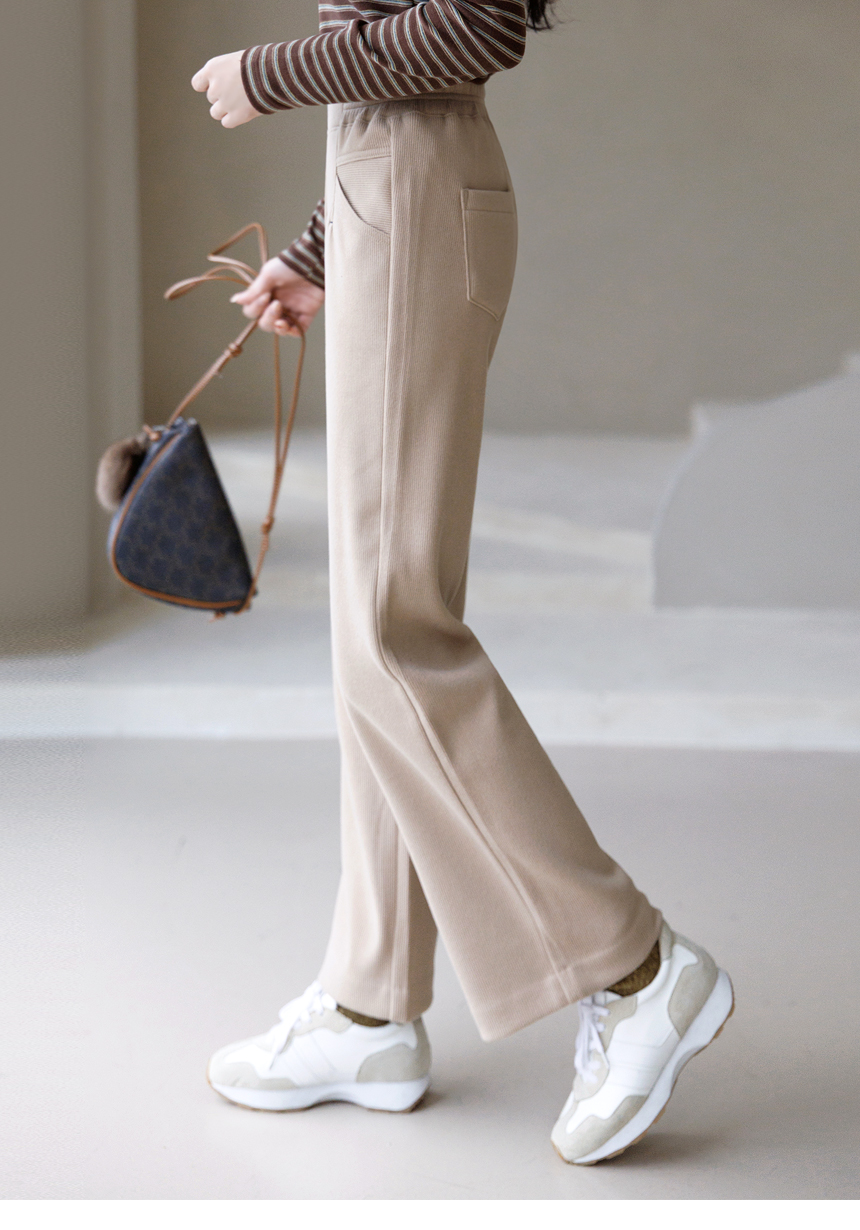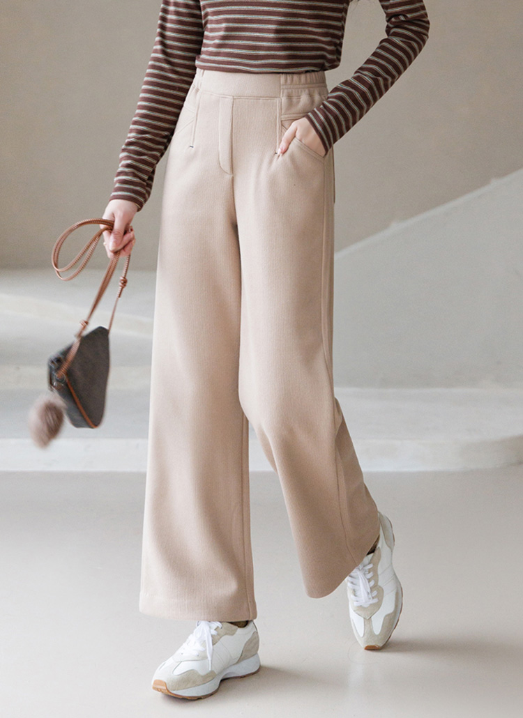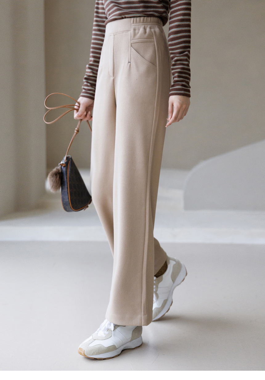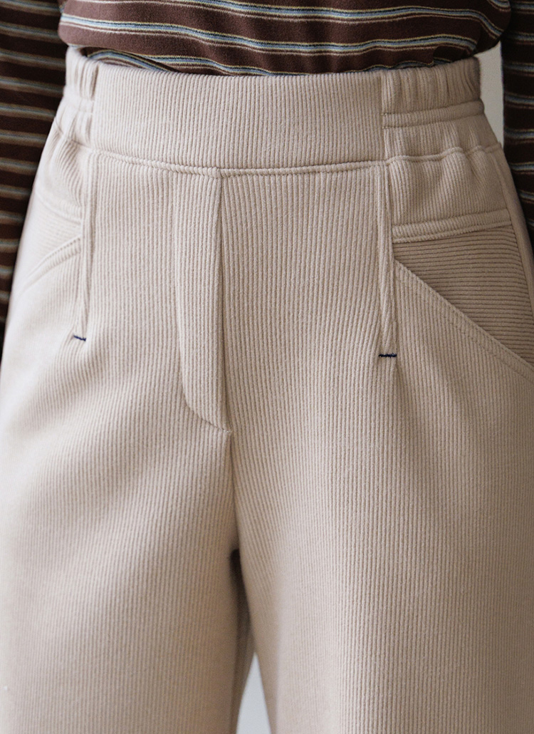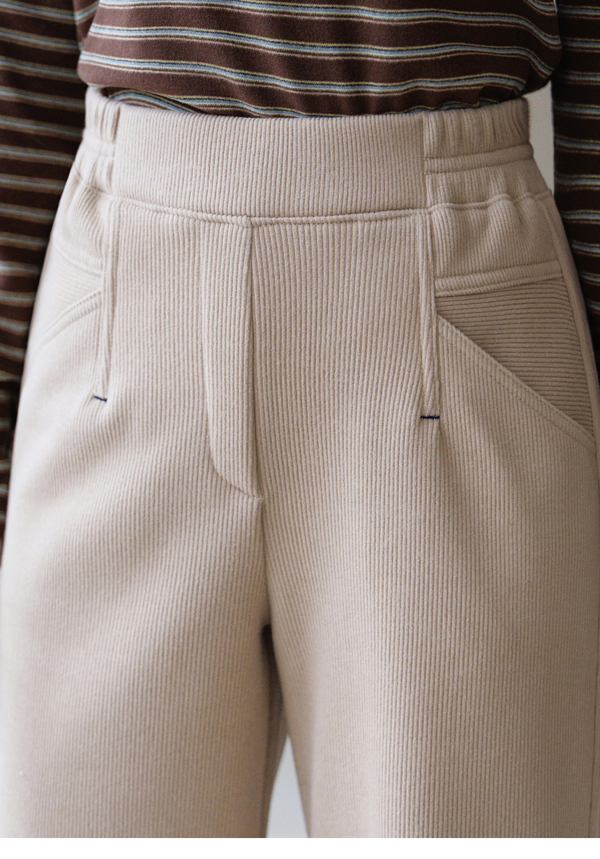 • 세이브 허리 밴딩 사선 포켓 골지 세미 와이드 팬츠