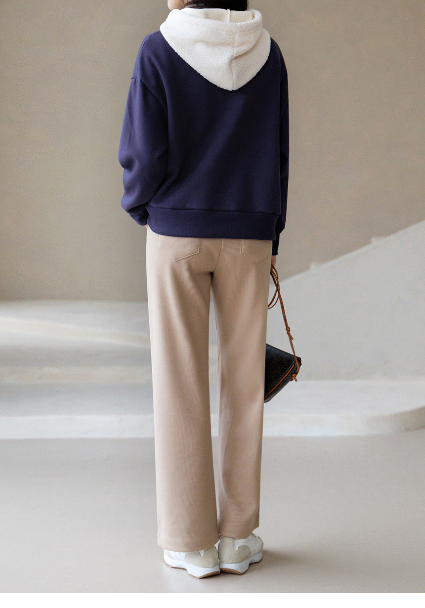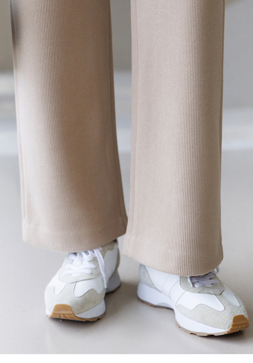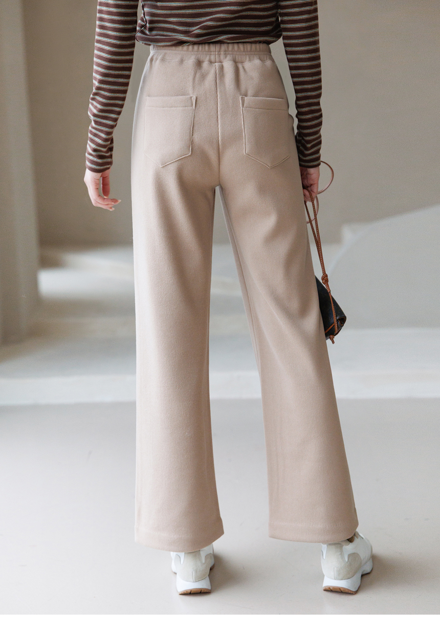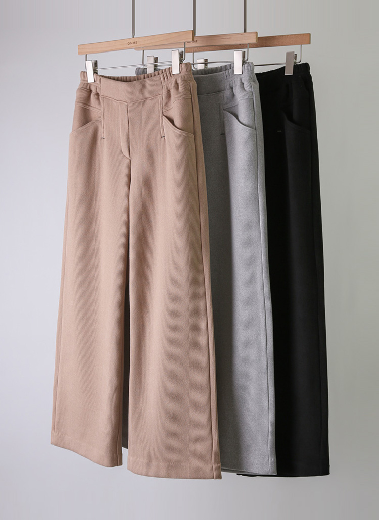도톰한 골지 텍스쳐가 포근함을 더해주는 세미 와이드 팬츠에요>