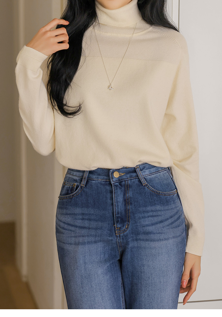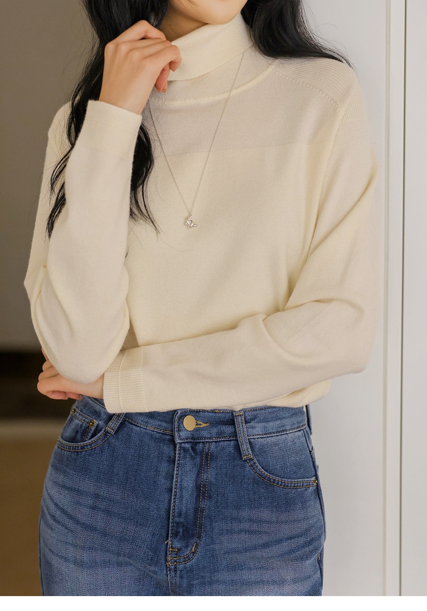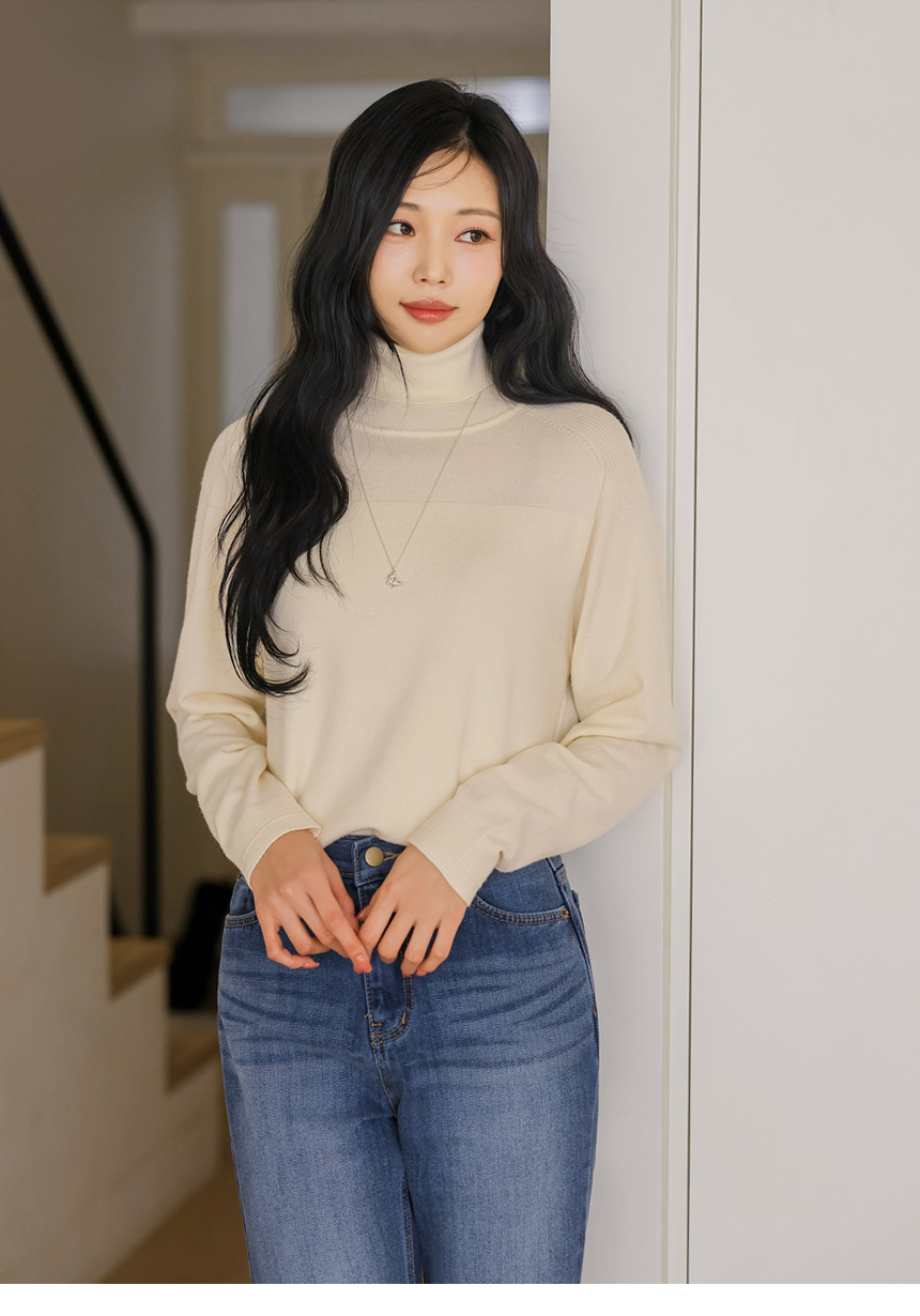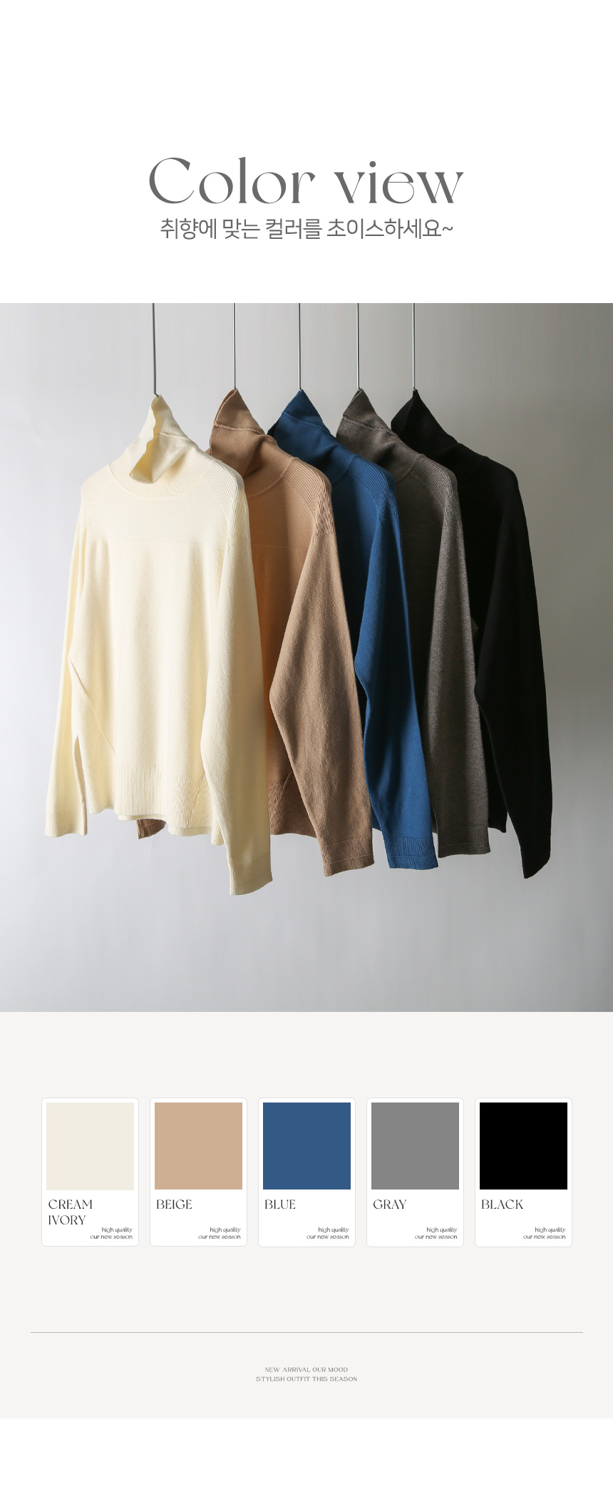 • [The Onme] (5 Colors) Relaxed Drape Viscose Turtleneck Knit Top