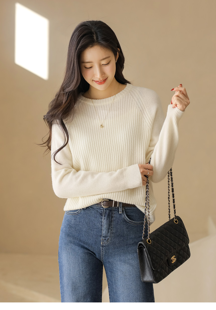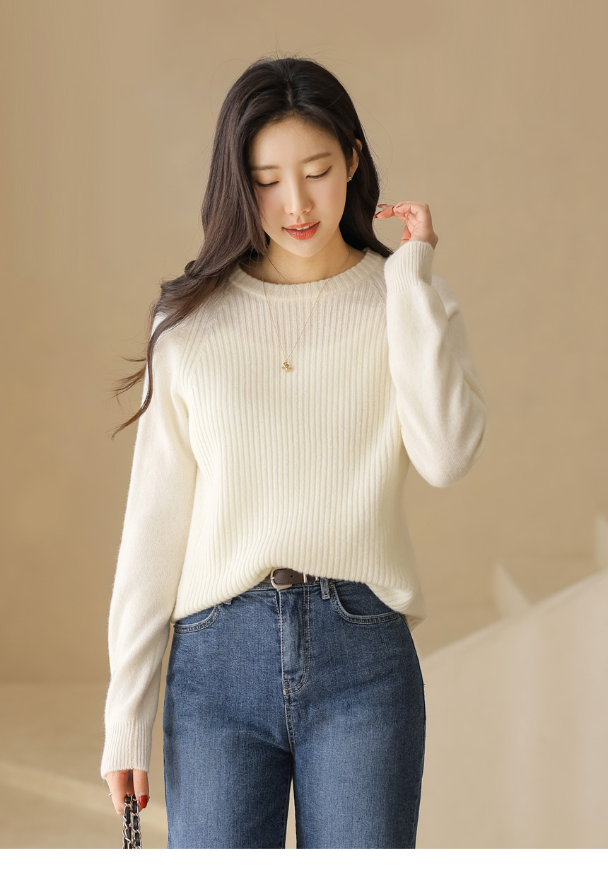 • (5 Colors) Soft Raglan Rib Wool Knit