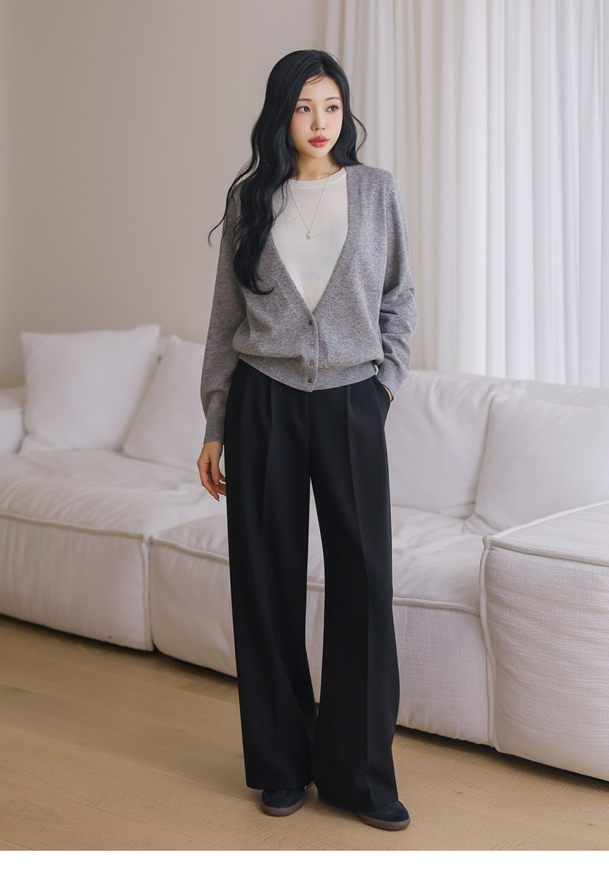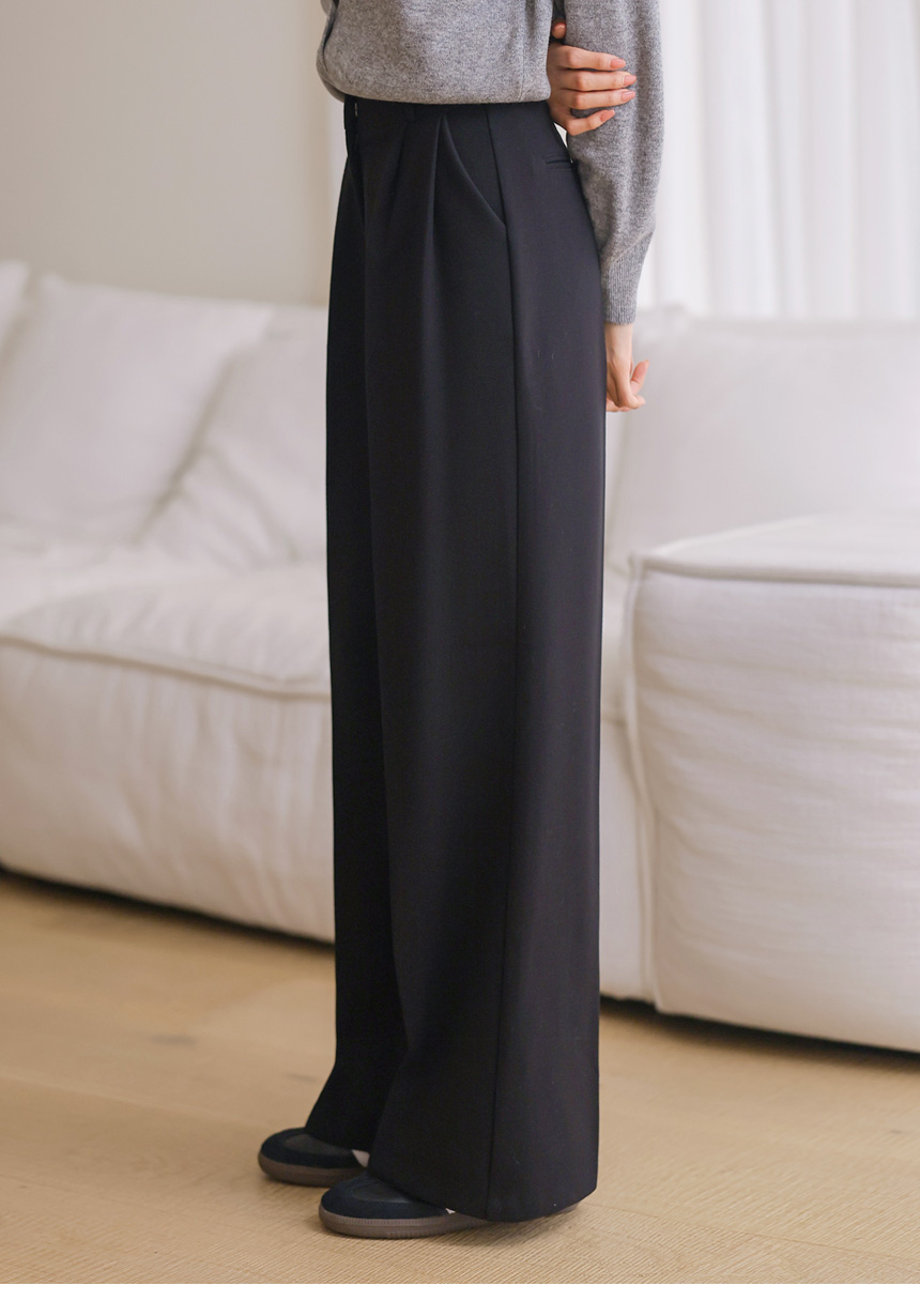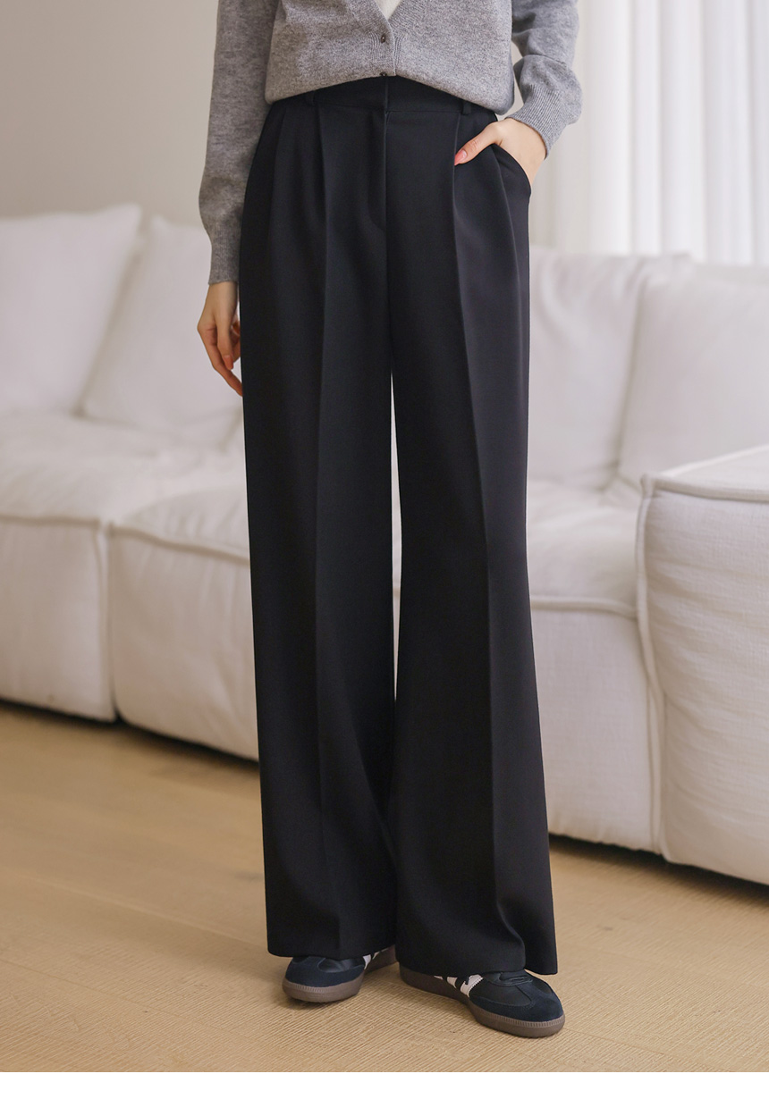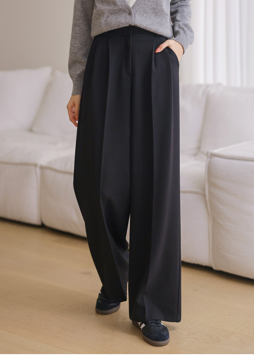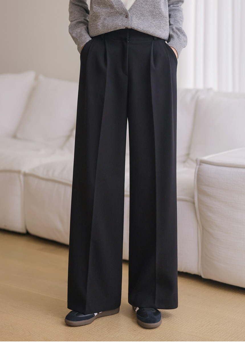 투핀턱 디테일로 허리부터 자연스럽게 떨어지는 와이드핏이