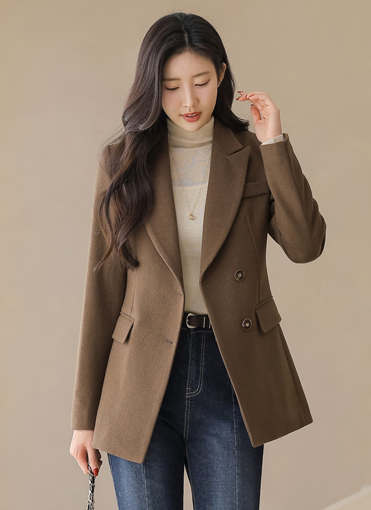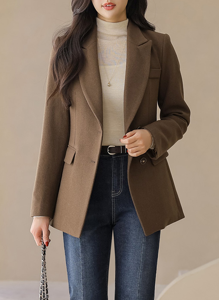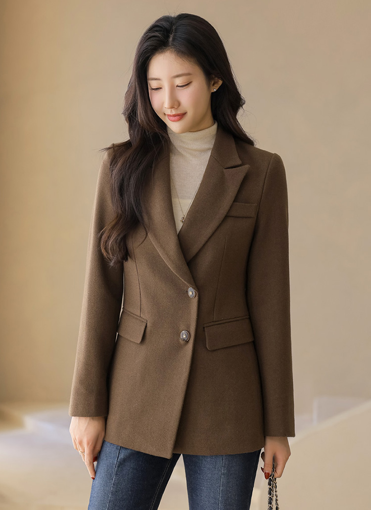 • Designed with a gentle diagonal closure and defined waist seams, this polished jacket delivers a sophisticated mood with a flattering fit, perfect for office wear or formal styling.