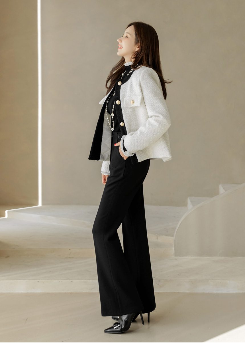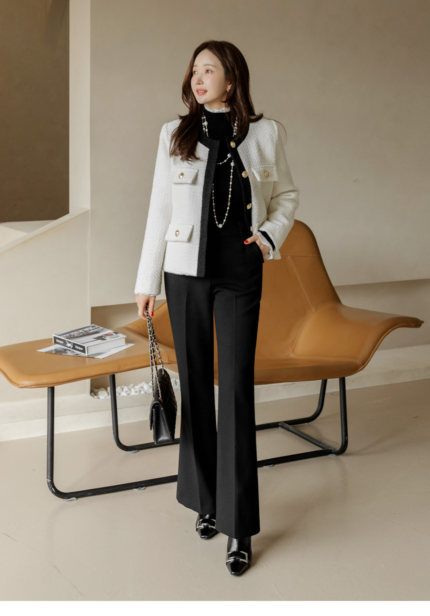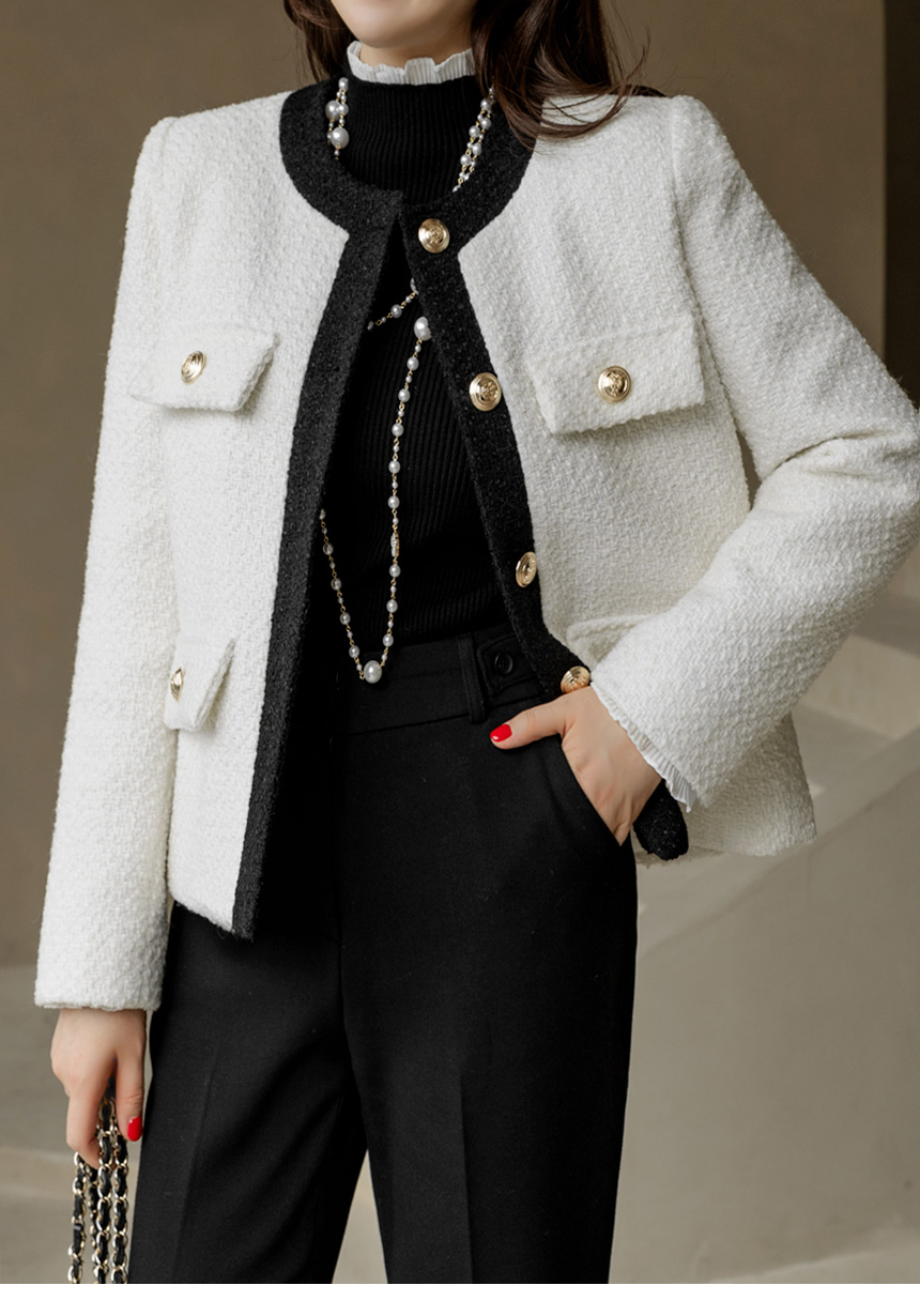 • Classic Contrast Gold Button Tweed Jacket