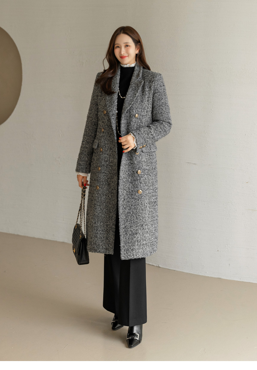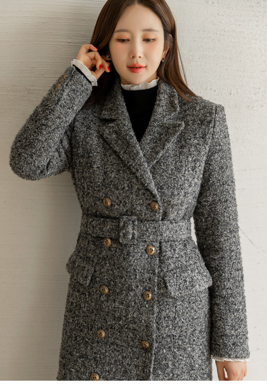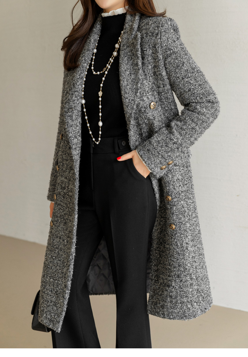 • Classic Contrast Gold Button Tweed Jacket