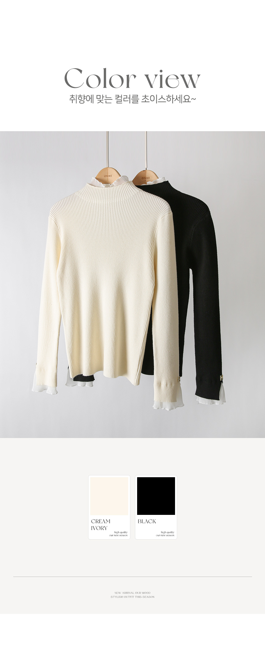니트의 실용성과 불라우스의 우아함을 동시에 담아낸 배색 니트에요