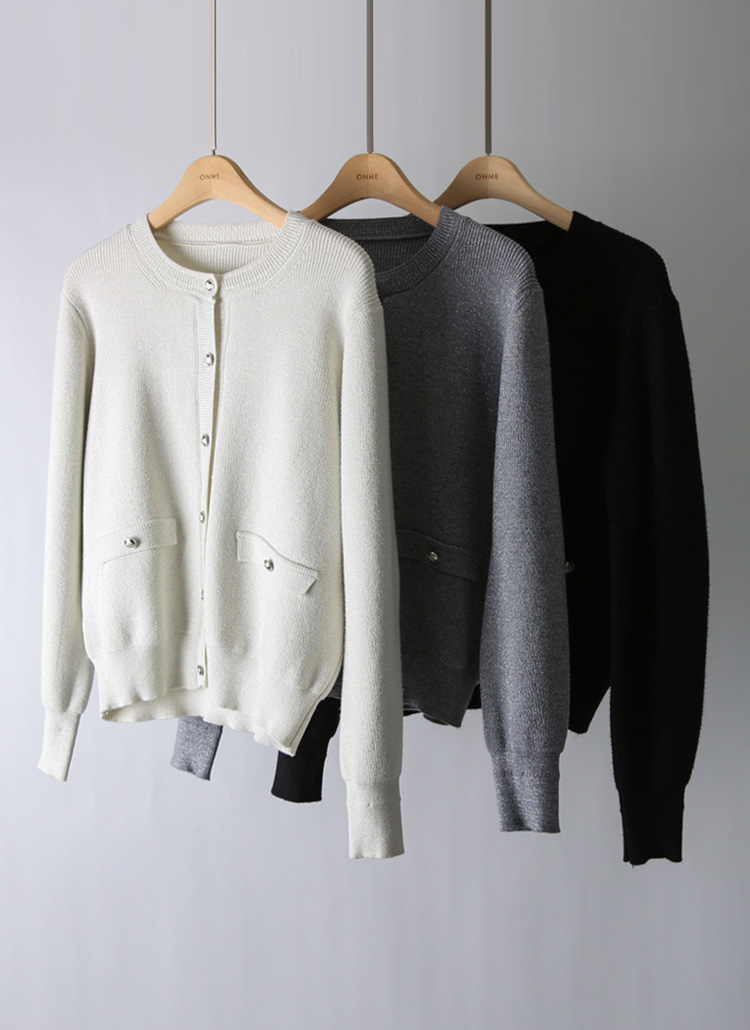 • Subtle Shimmer Round Neck Knit Cardigan