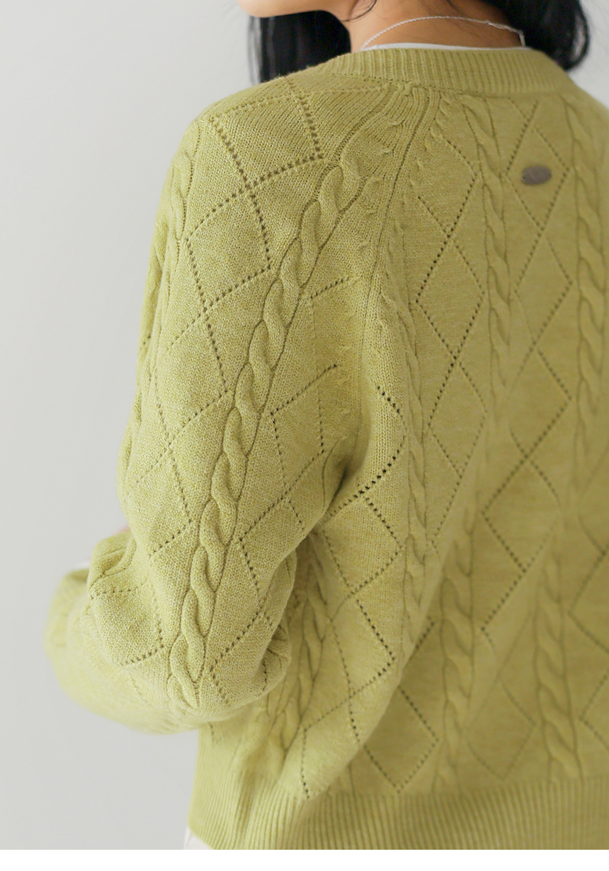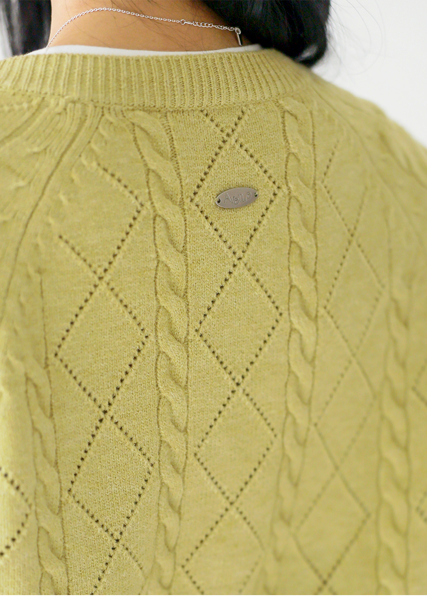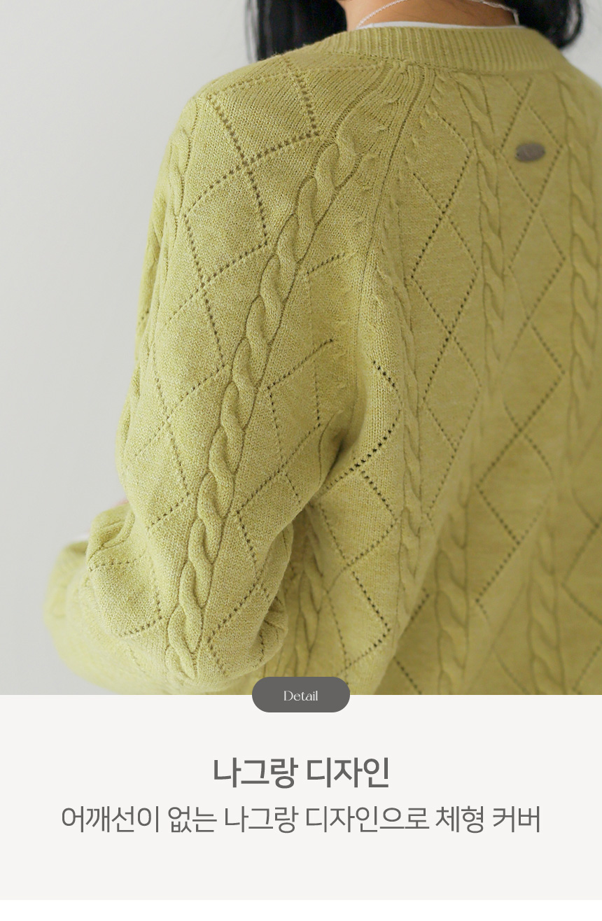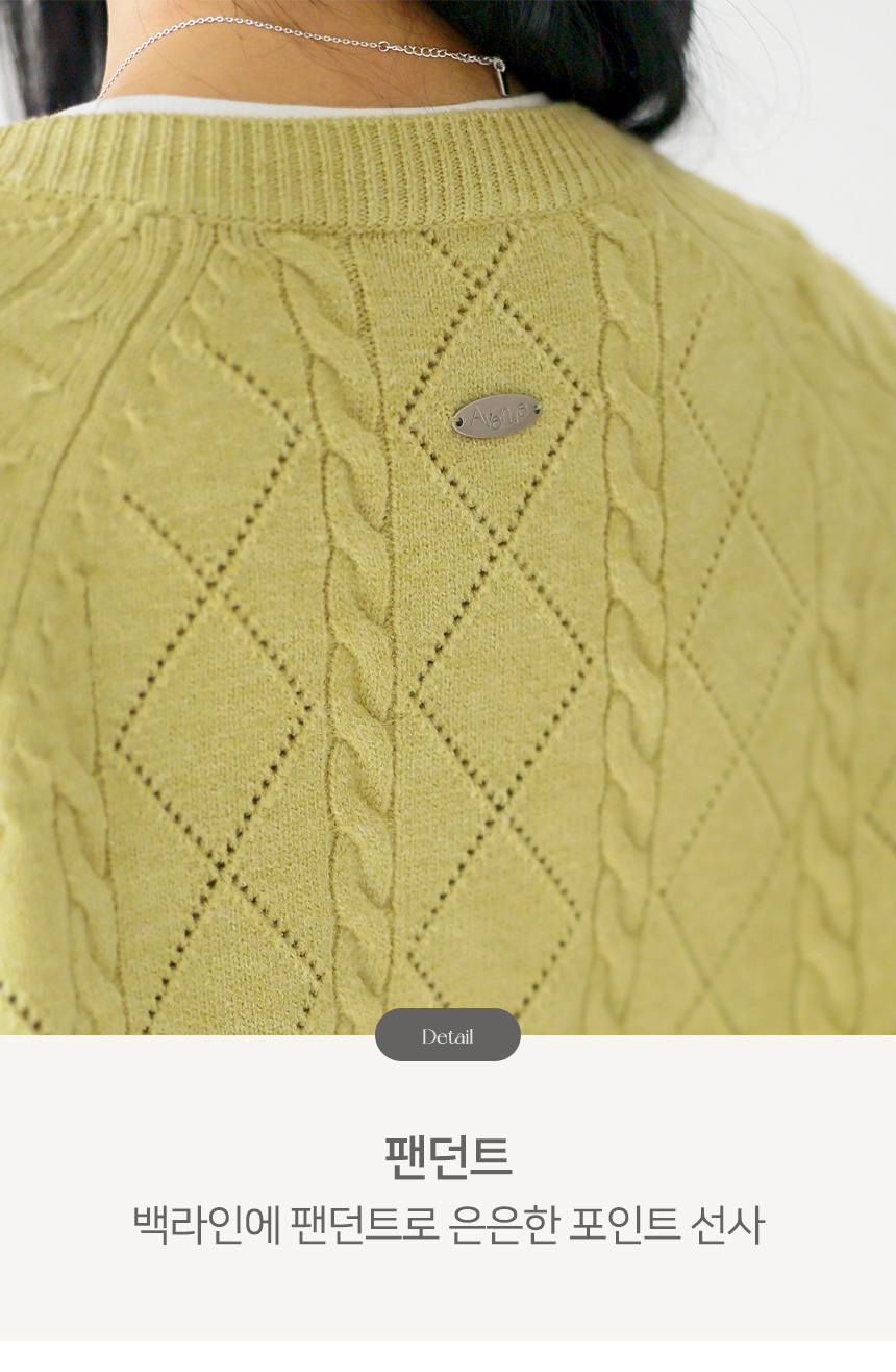 • [Theonme] 빌러즈 백 팬던트 꽈배기 아가일 니트 가디건