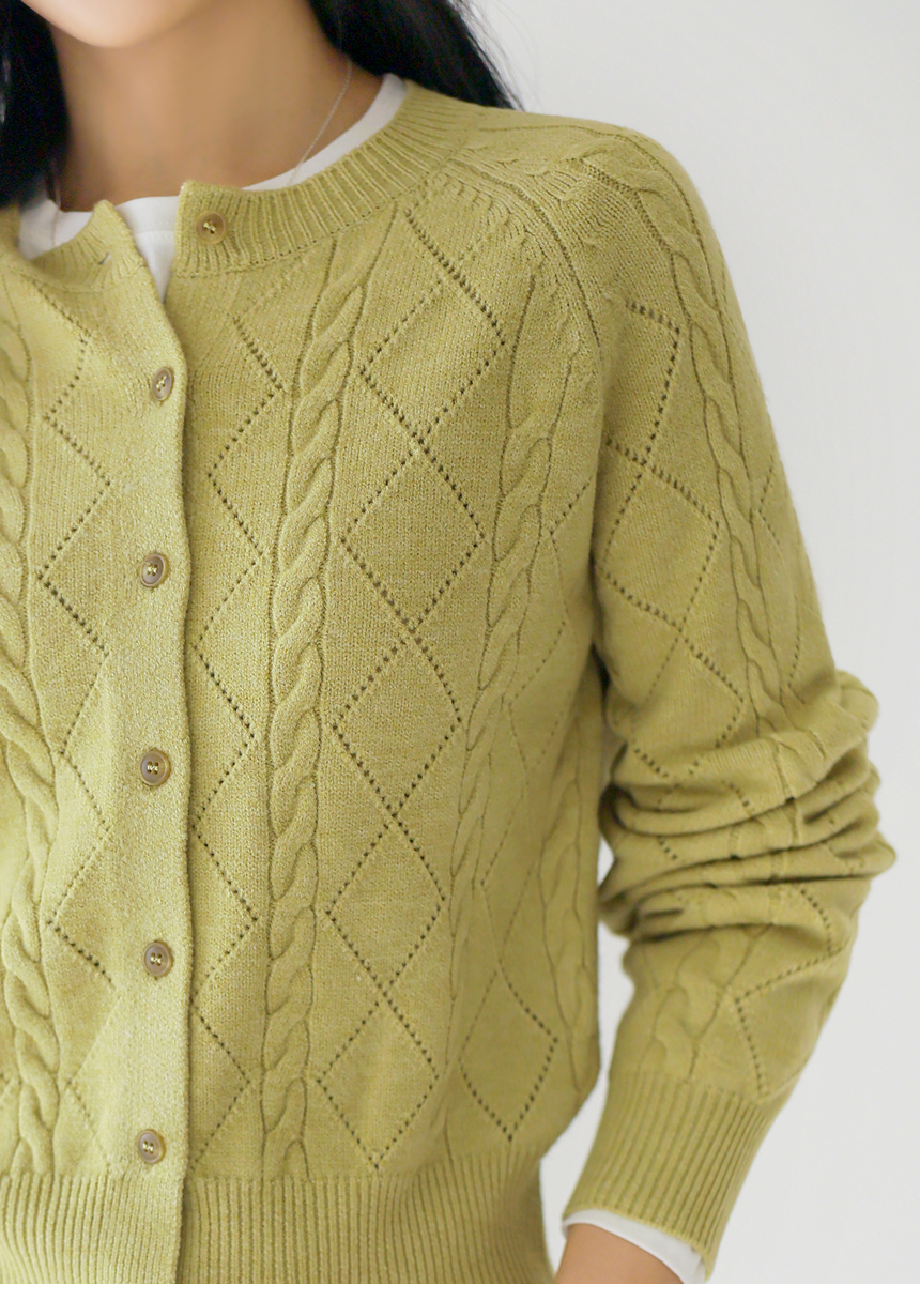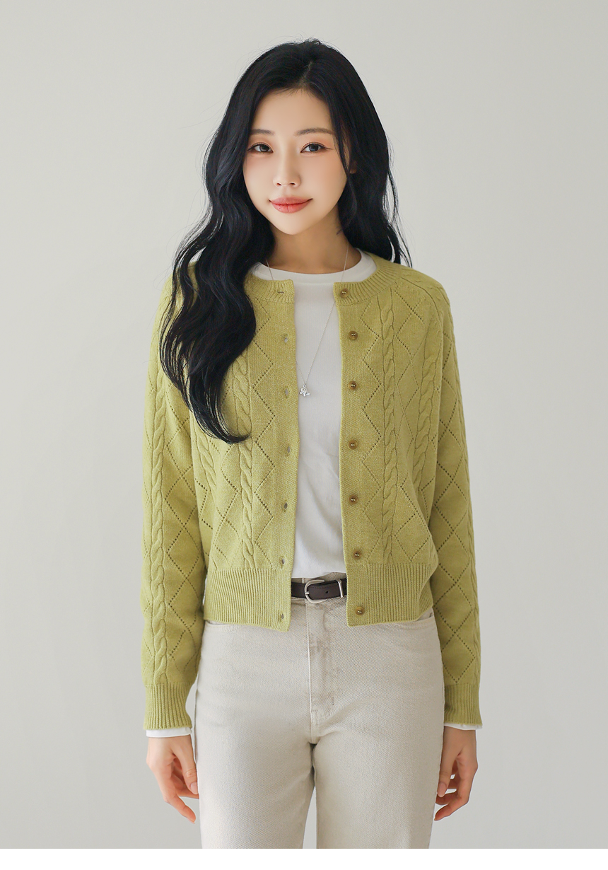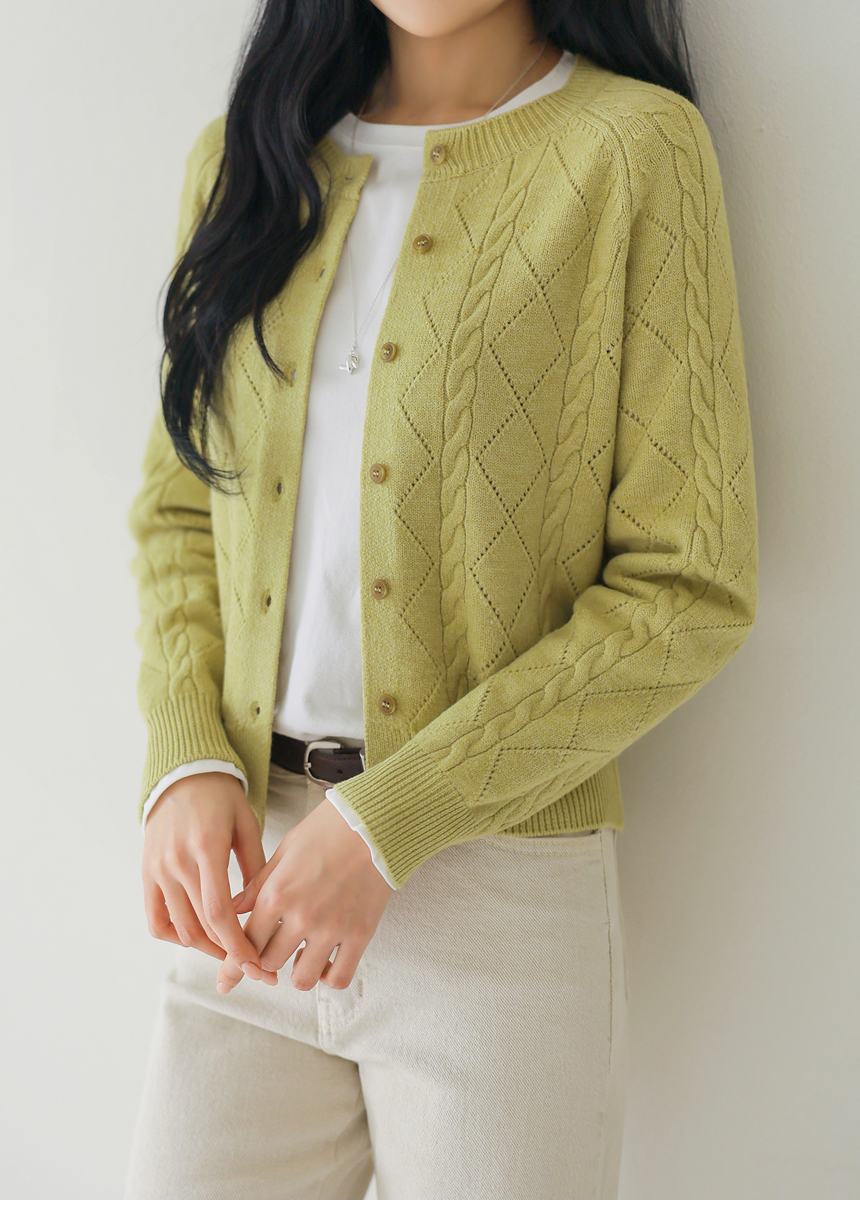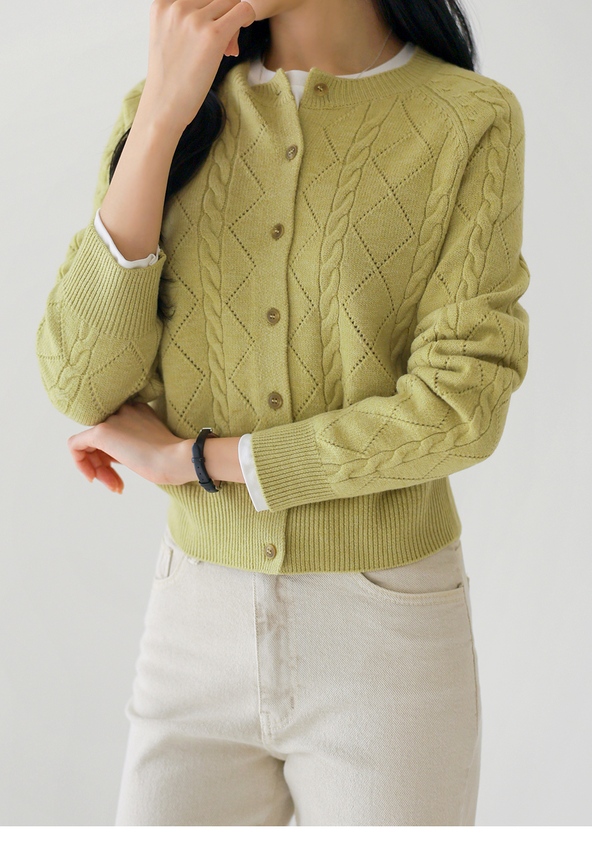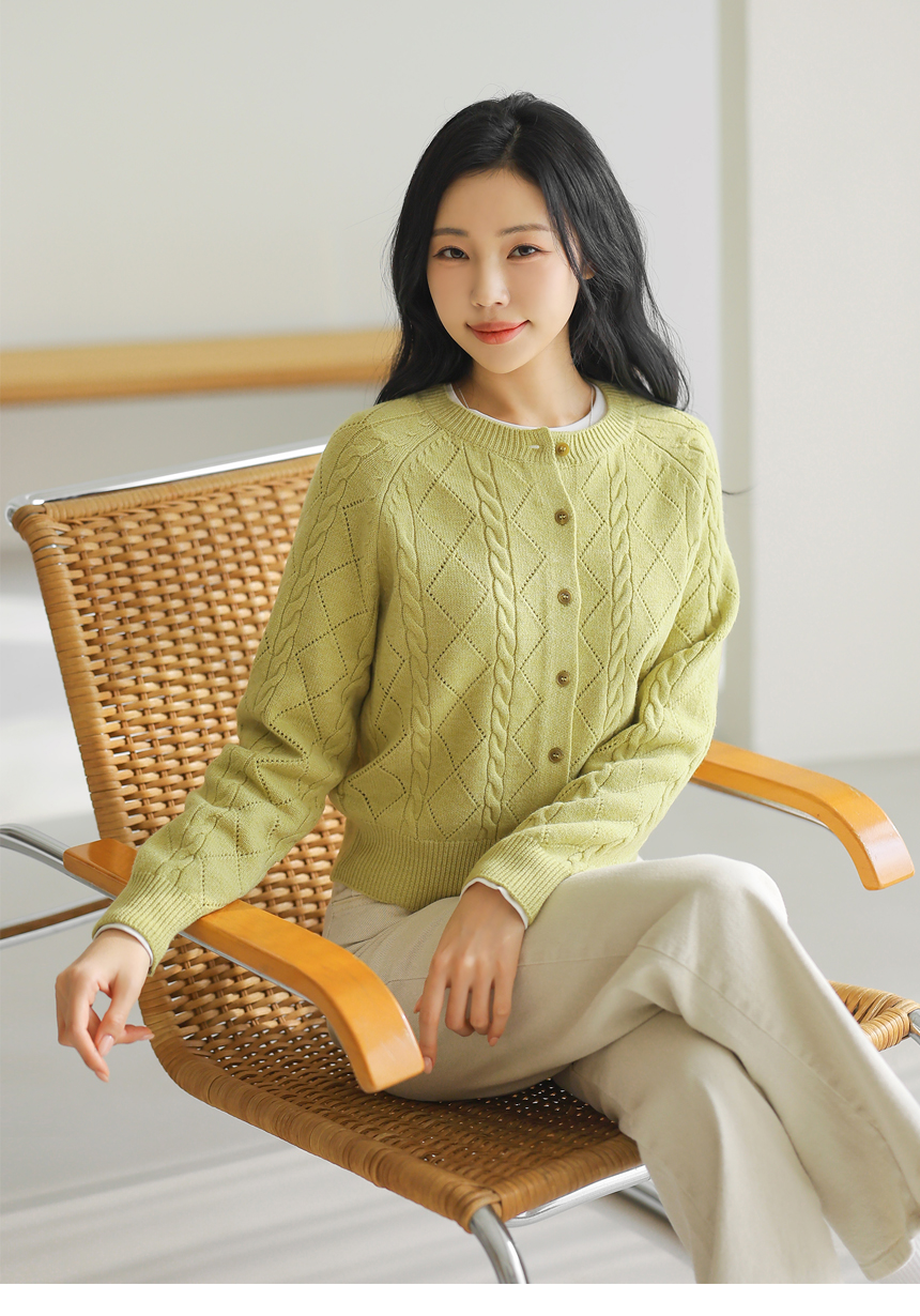 • [Theonme] 빌러즈 백 팬던트 꽈배기 아가일 니트 가디건