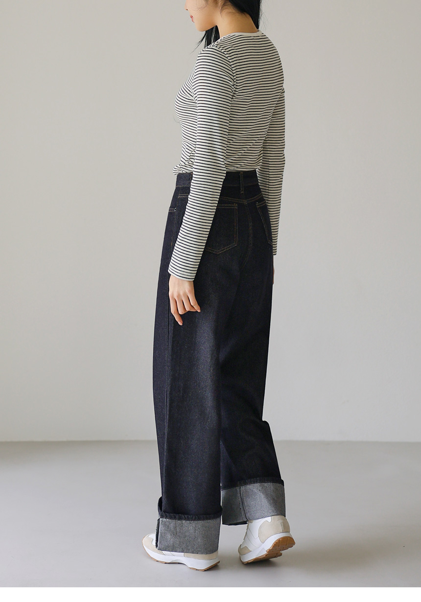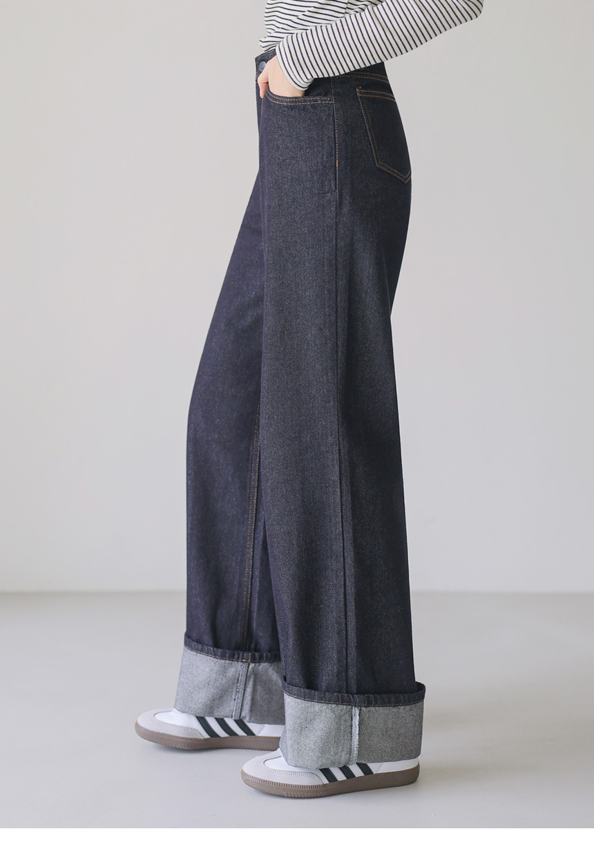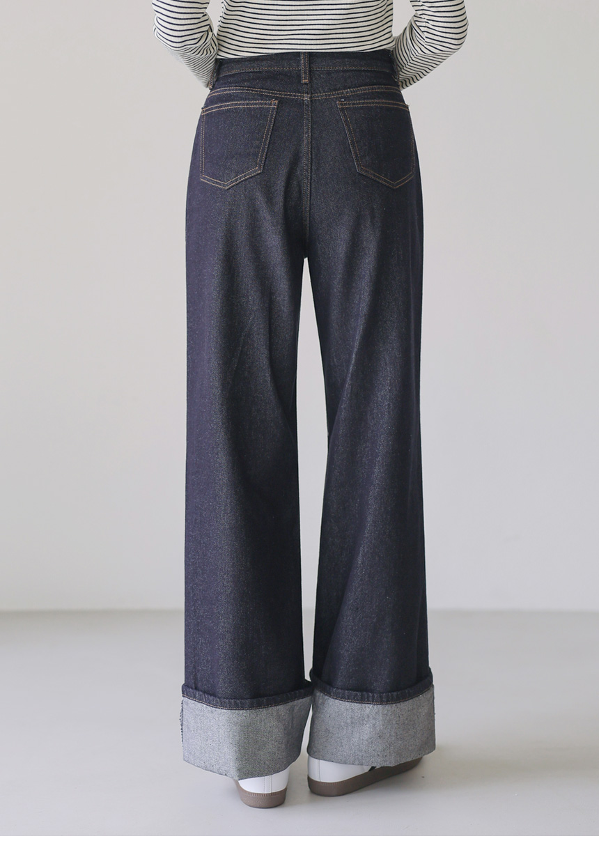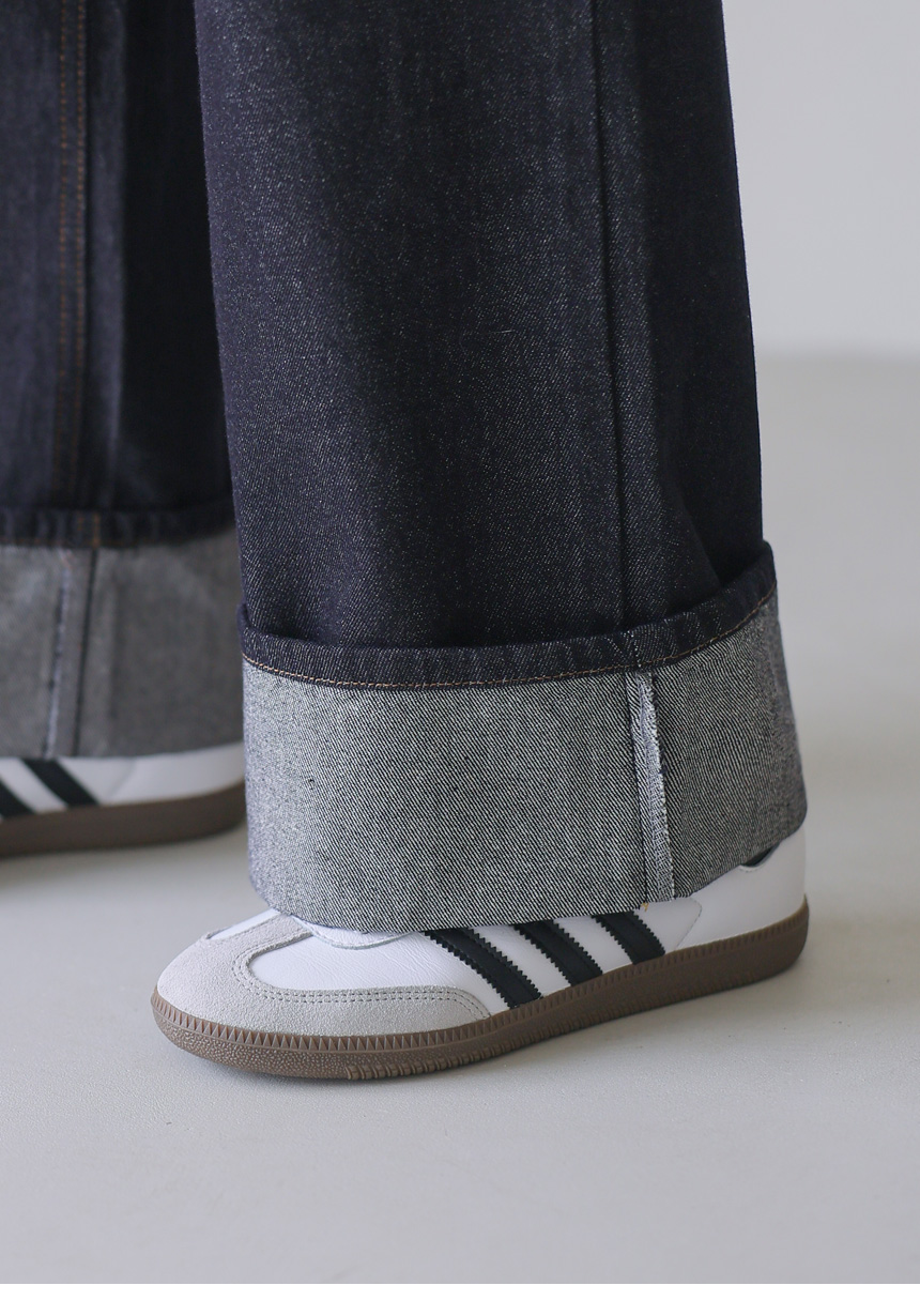 • [Theonme] 아레트 롤업 생지 와이드 데님 팬츠