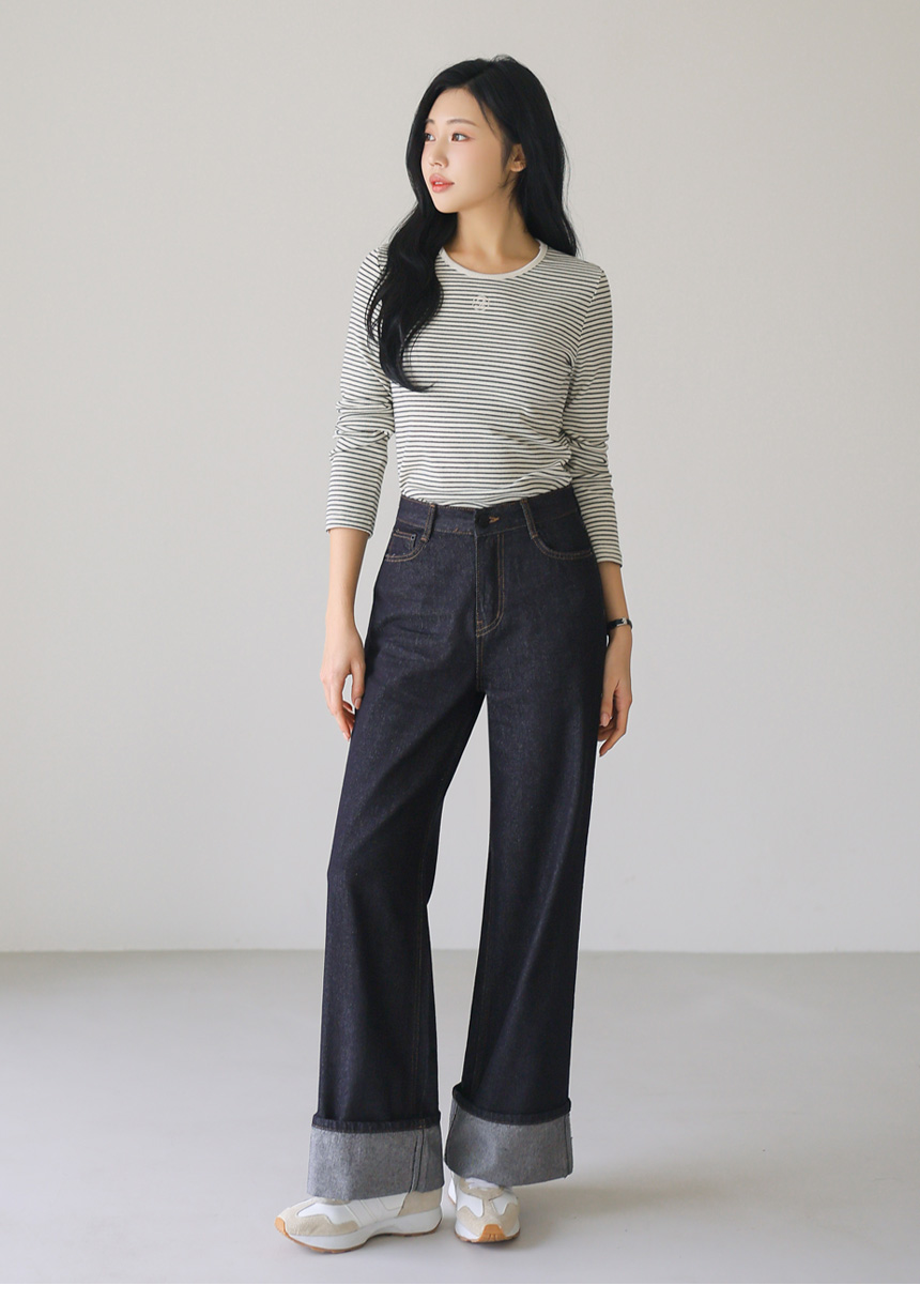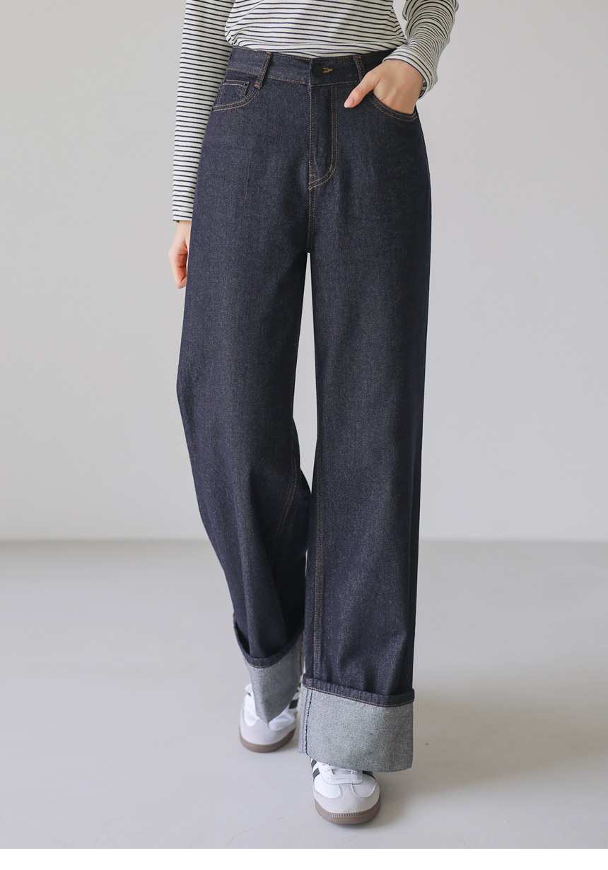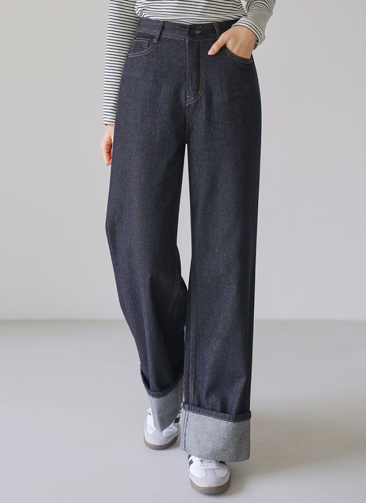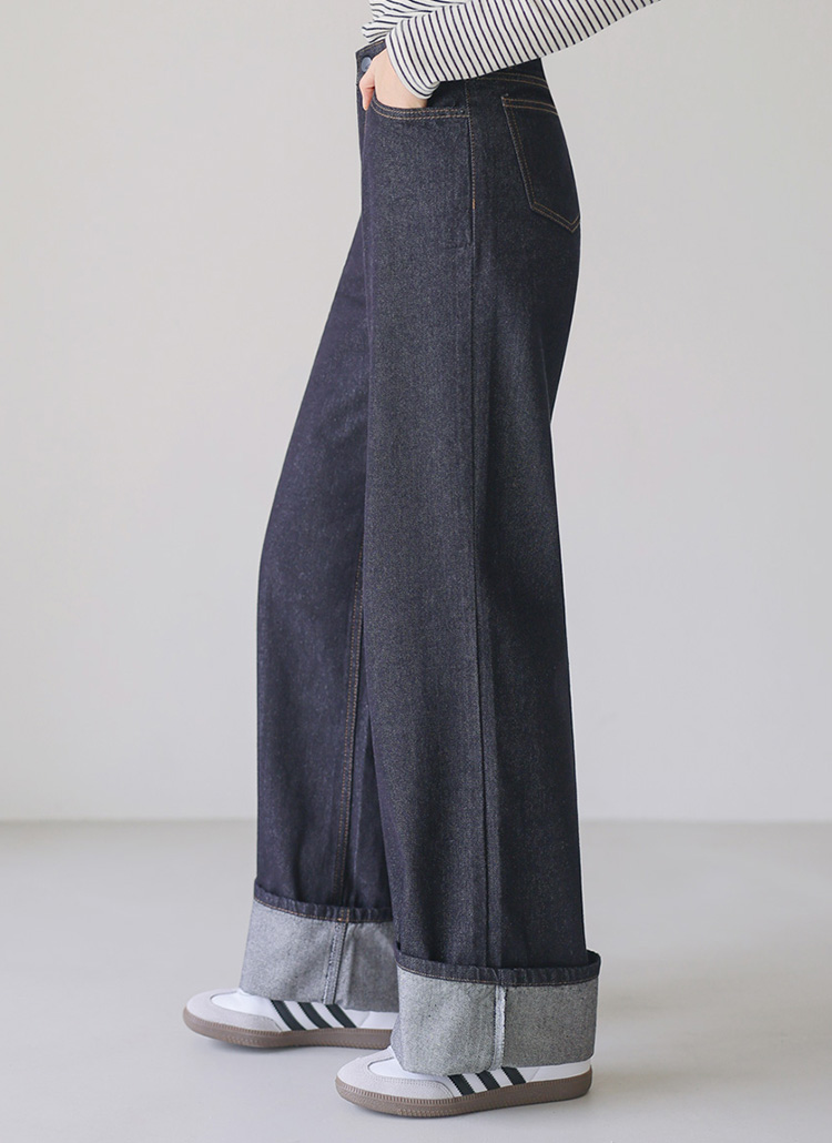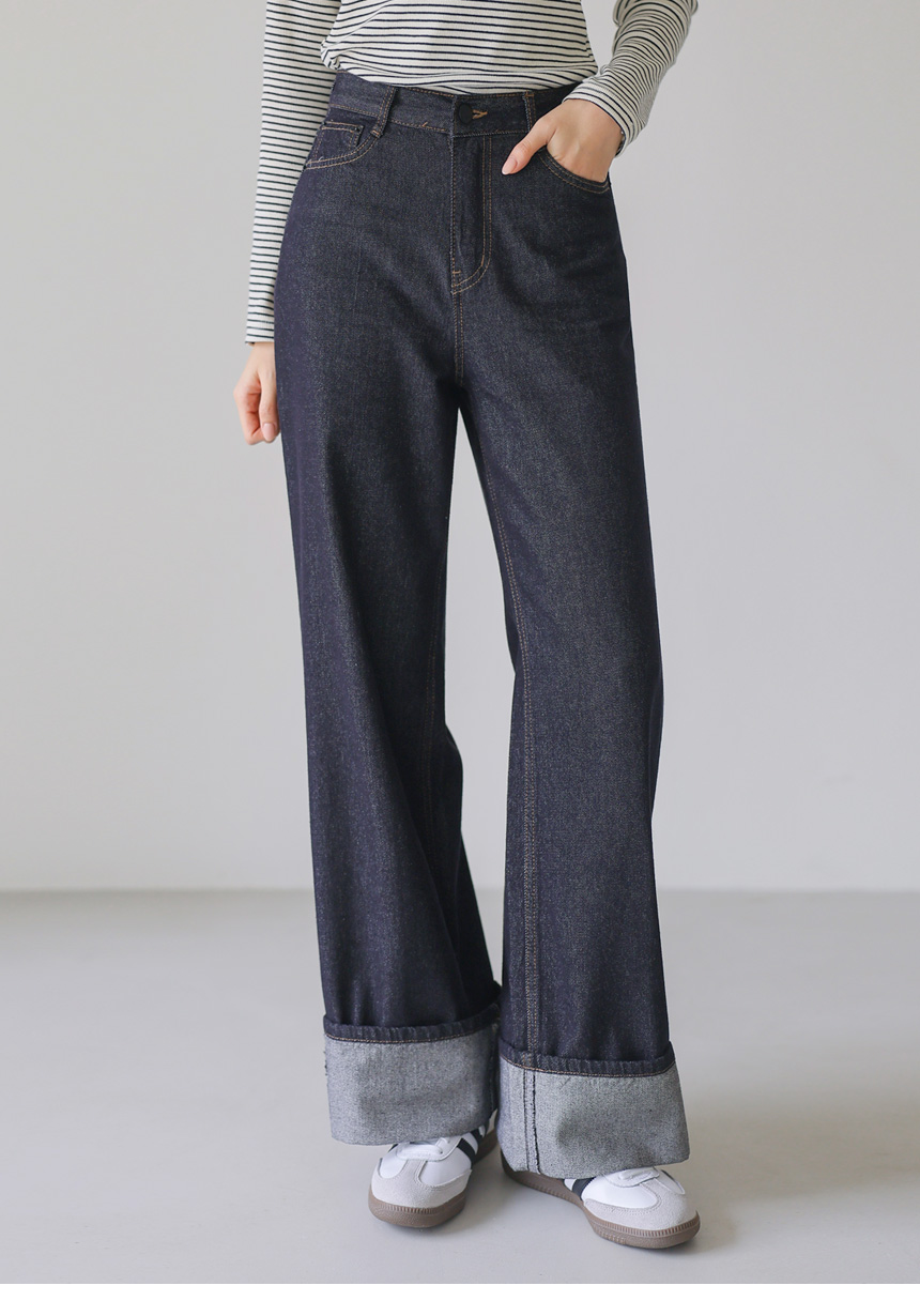 • [Theonme] 아레트 롤업 생지 와이드 데님 팬츠