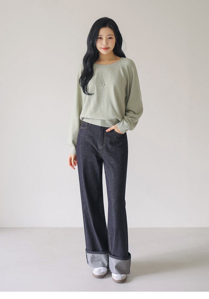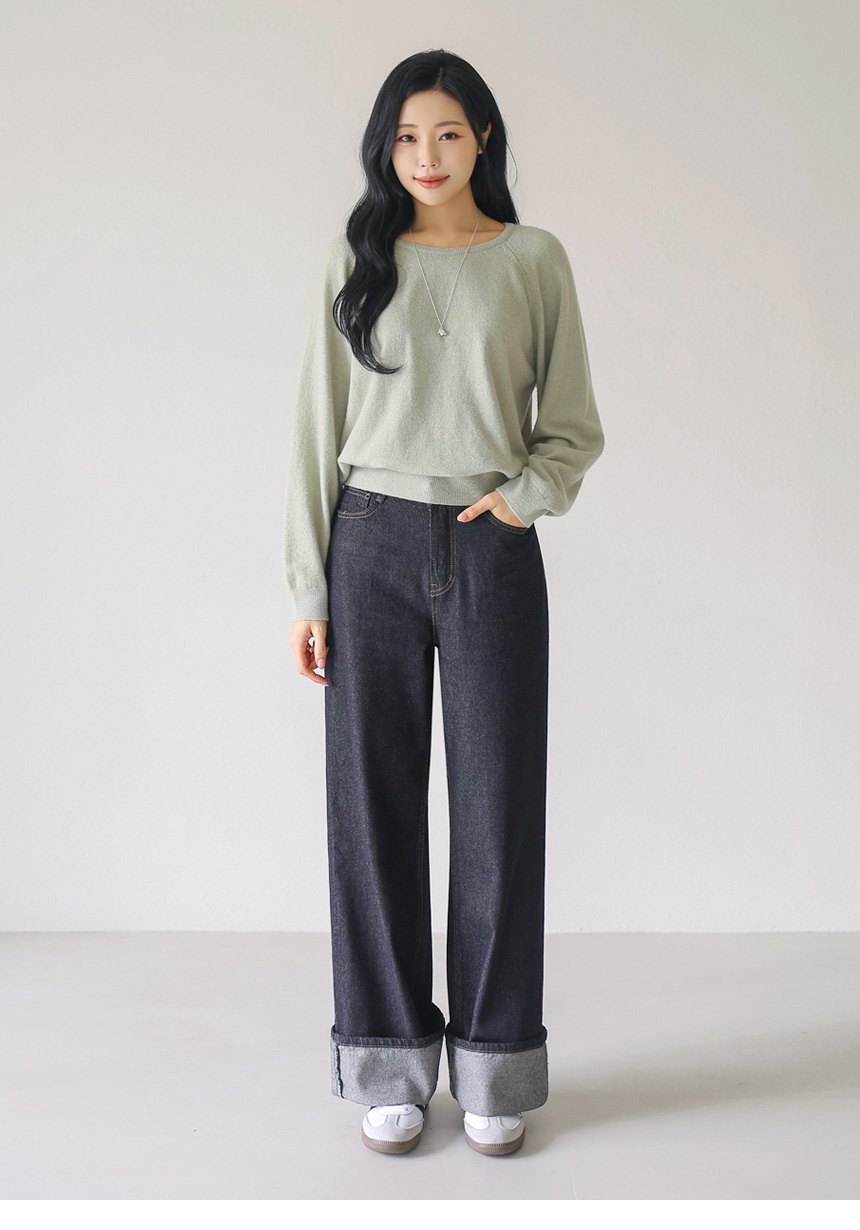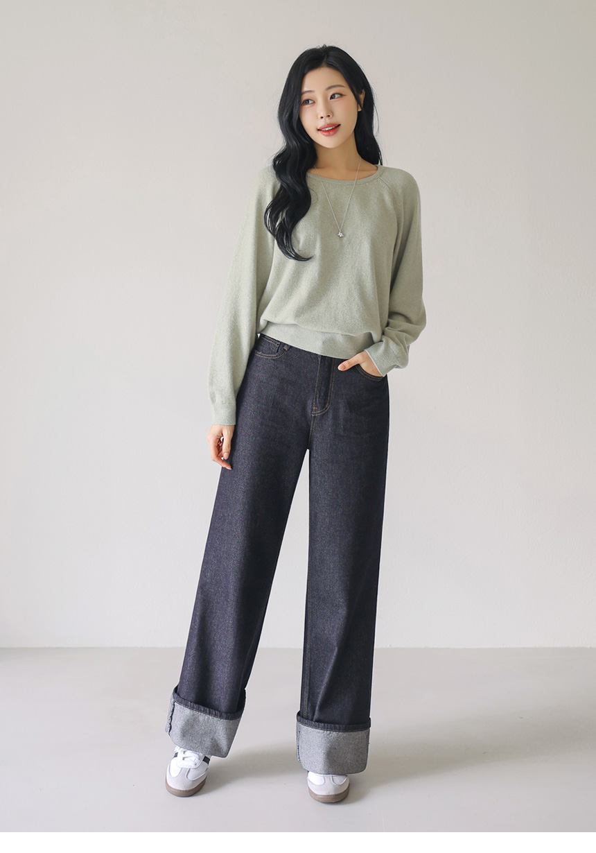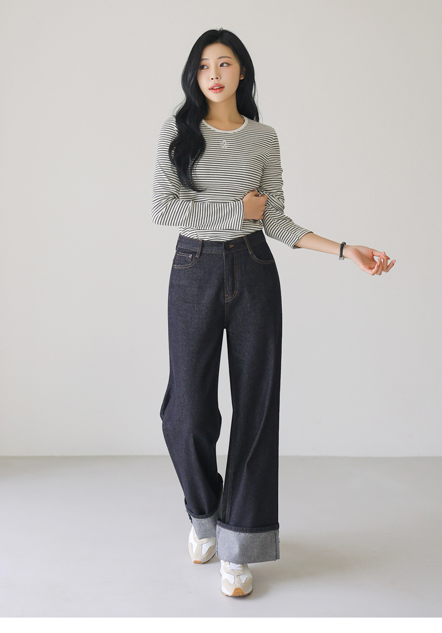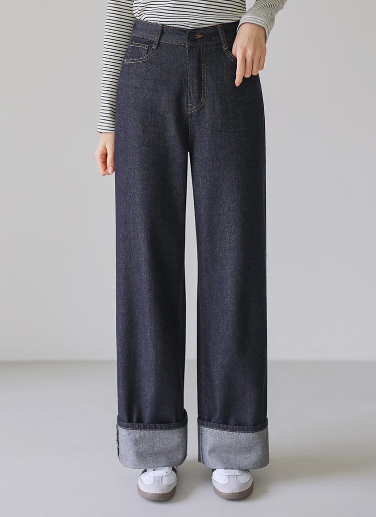 • [Theonme] 아레트 롤업 생지 와이드 데님 팬츠