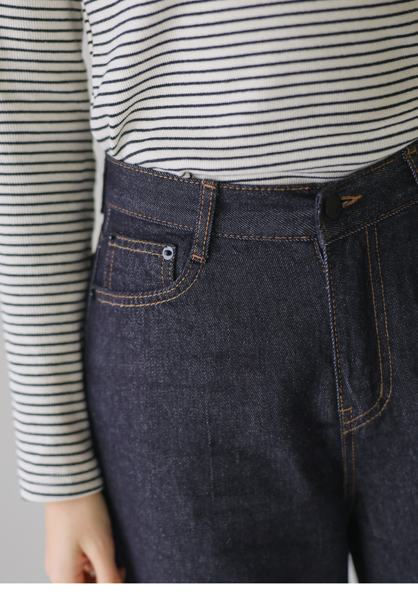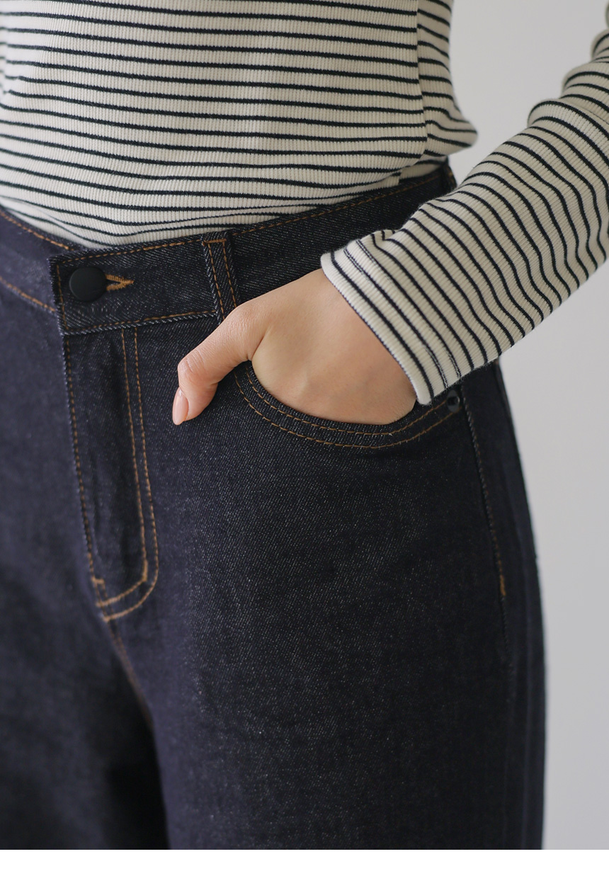 생지 특유의 깔끔한 컬러감이 매력적인 데님 팬츠입니다~