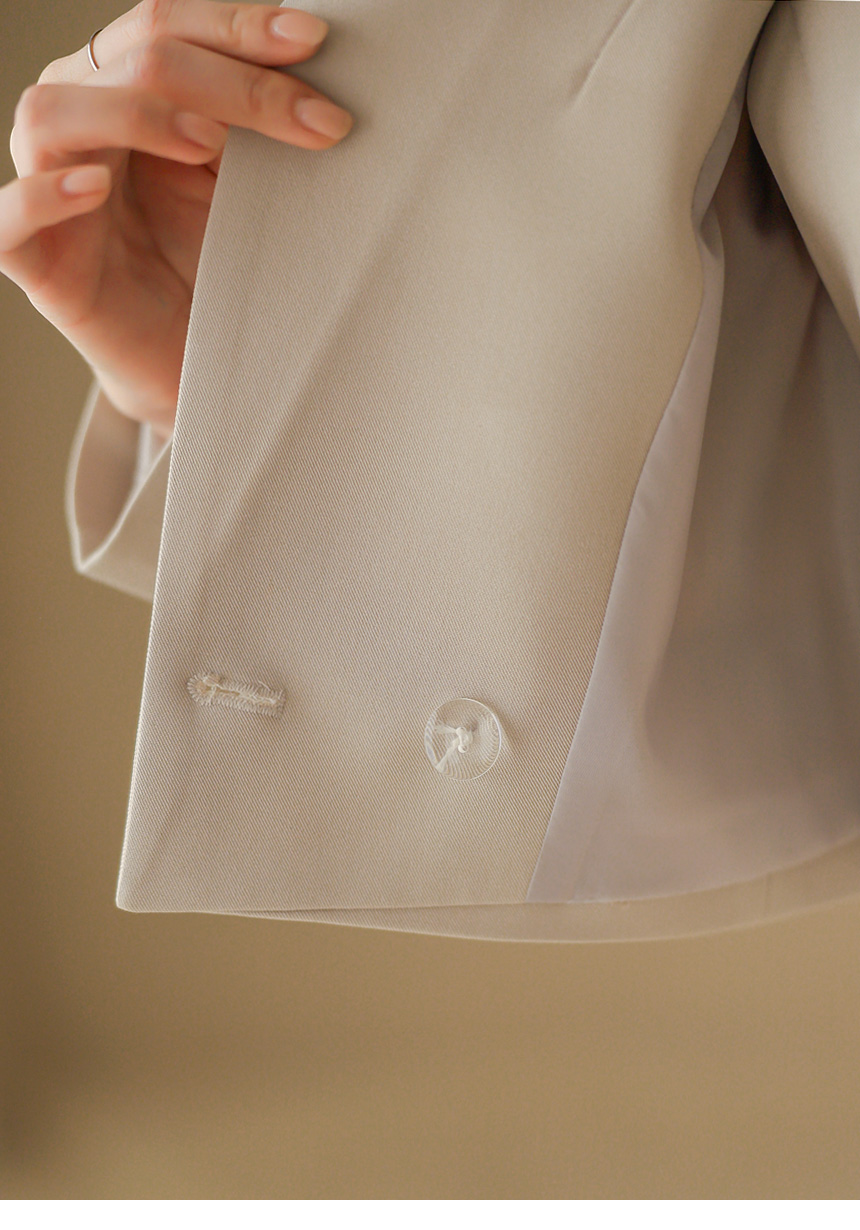 자켓은 간결하게 떨어지는 크롭 기장과 더블 디자인으로 세련된 비율을 완성해주며